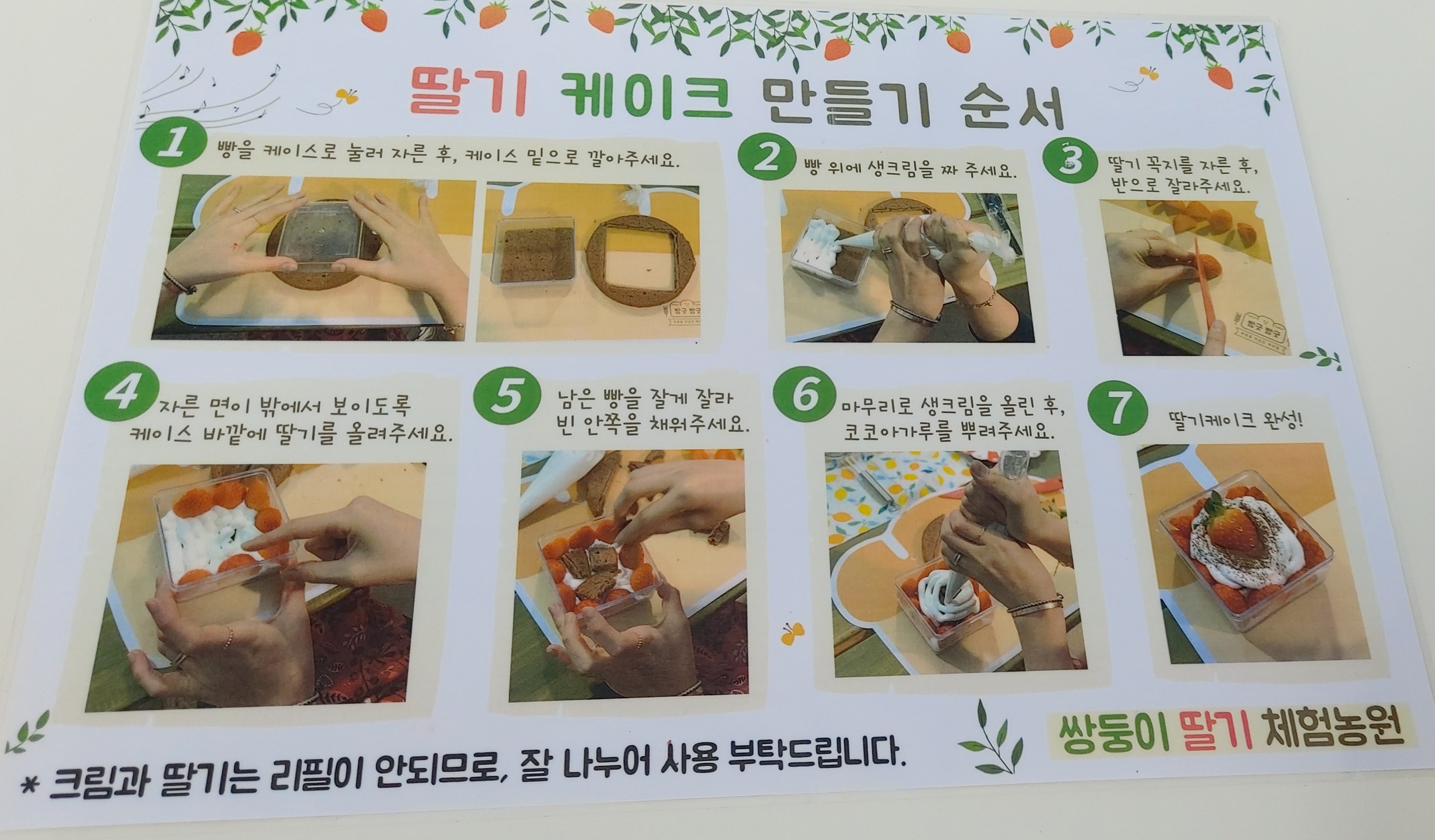 저희는 딸기 따기 체험은 2시, 딸기케이크 만들기 체험은 3시로 알려주셨어요.
