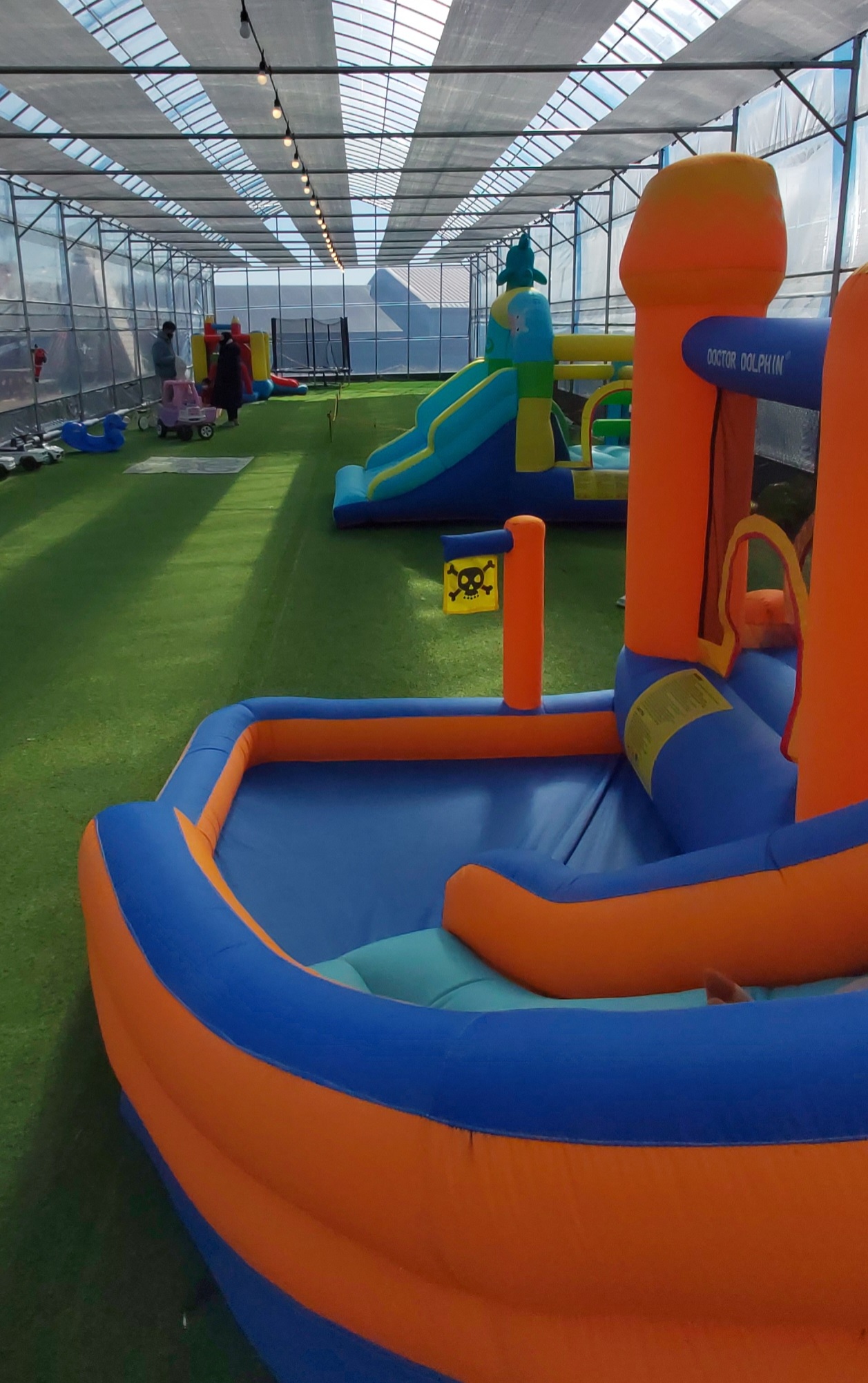 아까 메인홀 옆에 이렇게 실내 놀이터가 갖춰진 비닐하우스가 있습니다.