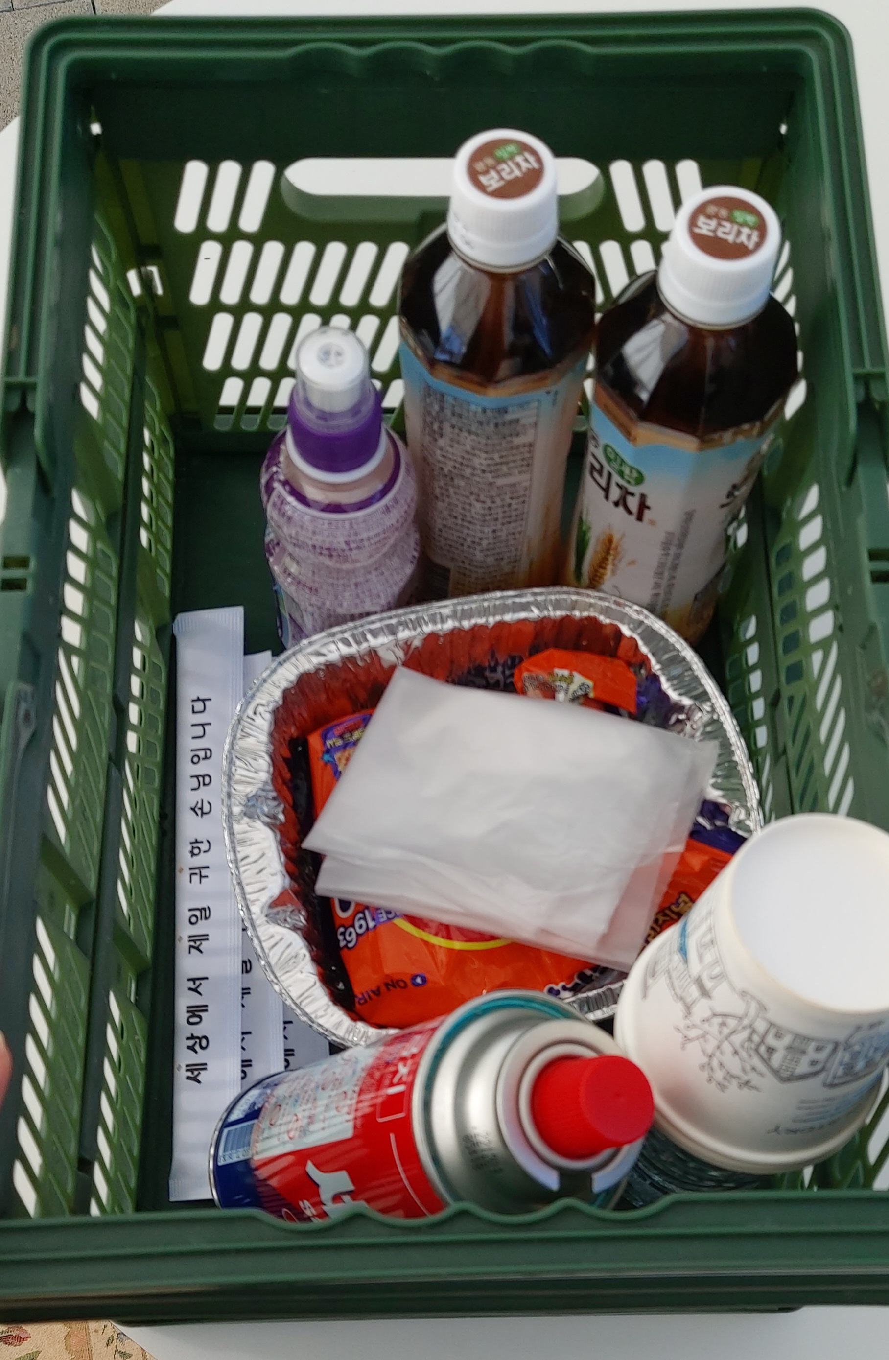 그리고 생수와 라면이 포함된 피크닉 바구니를 주십니다.