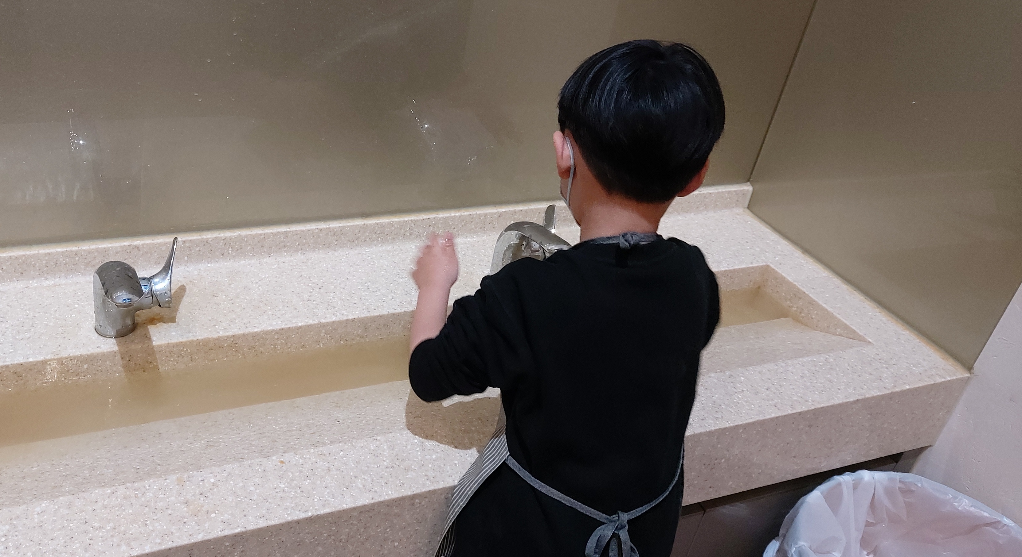 만들기 후 세면대가 있어서 깨끗하게 손을 씻어요.