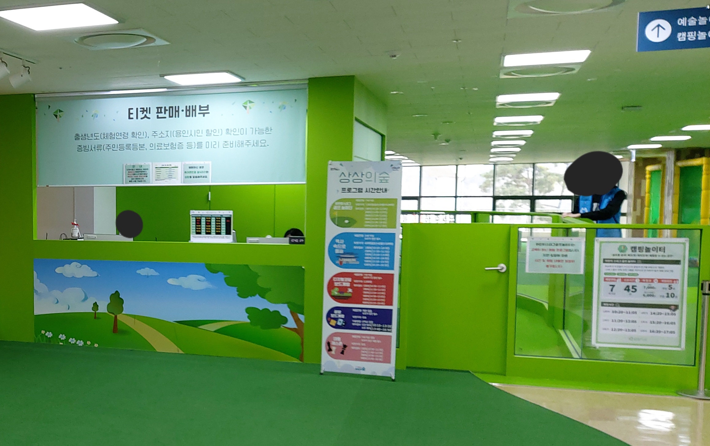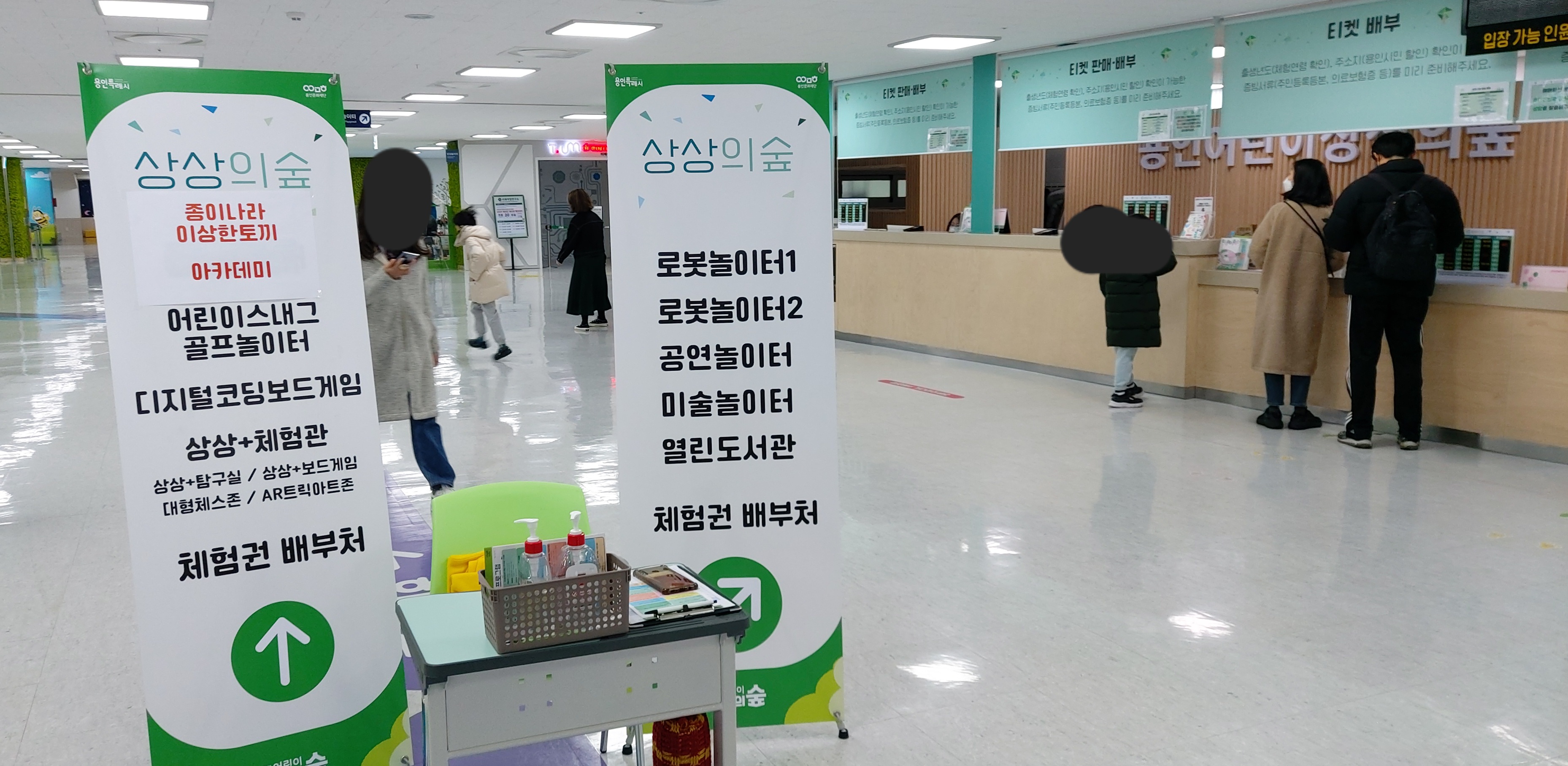 현재 로봇놀이터, 공연놀이터, 미술놀이터는 입구에 들어오자마자 왼쪽 안내데스크에서 티켓을 수령하시면 됩니다.