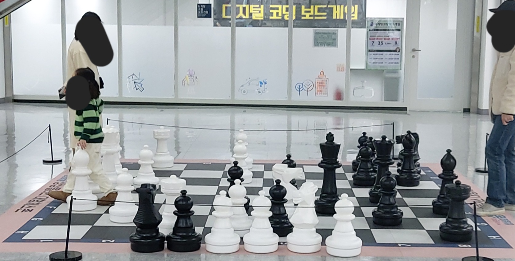 대형 체스가 아이들의 시선을 끄네요.