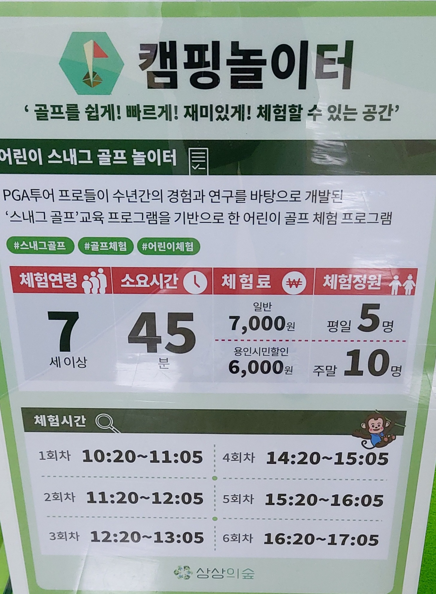 어린이 스내그 골프 놀이터 (7세 이상, 45분 수업, 7000원 *용인시민 6000원)