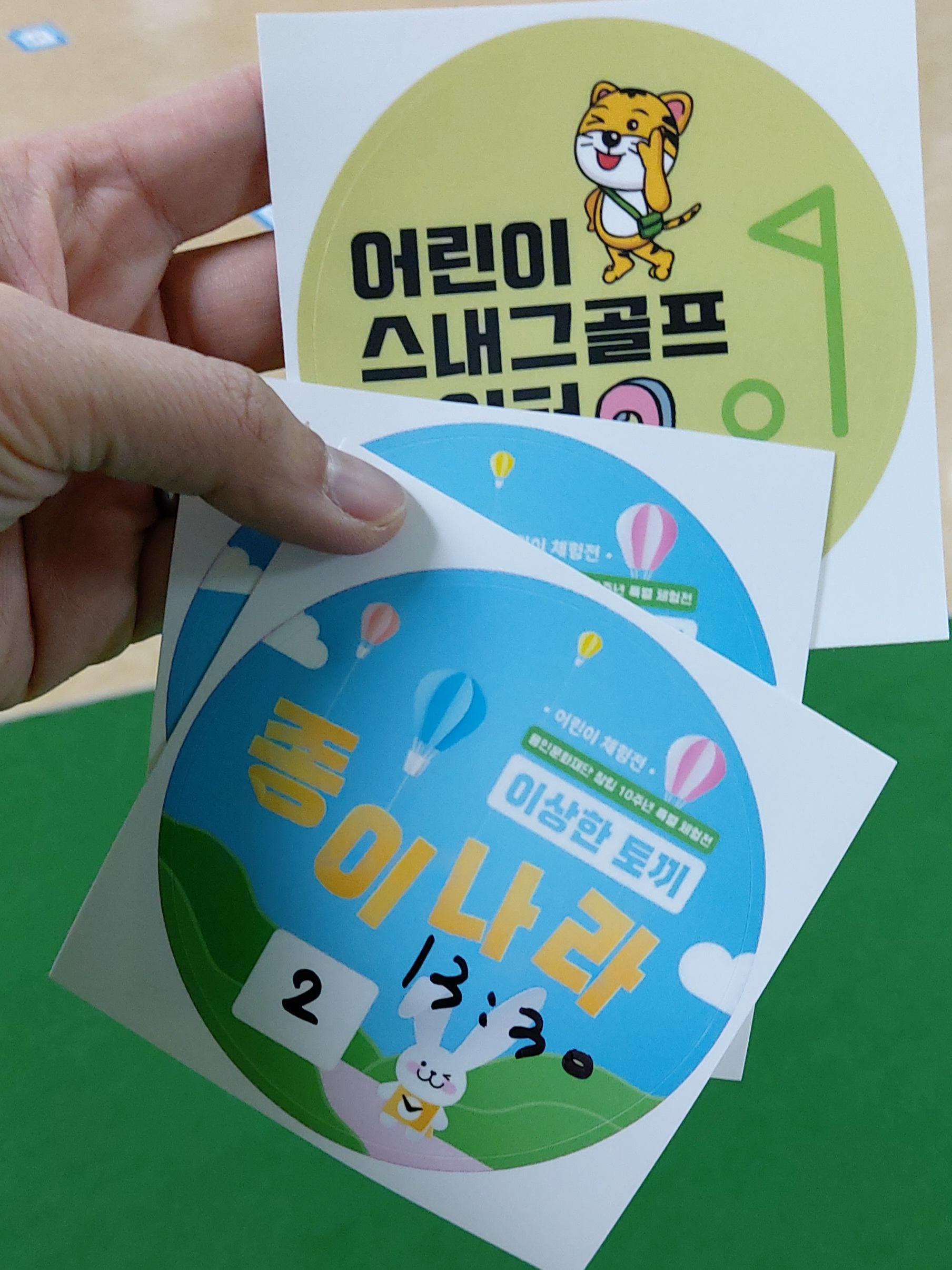 예약한 프로그램에 해당하는 스티커를 줍니다. 아이 옷에 프로그램 시간별로 붙여 주시면 됩니다.