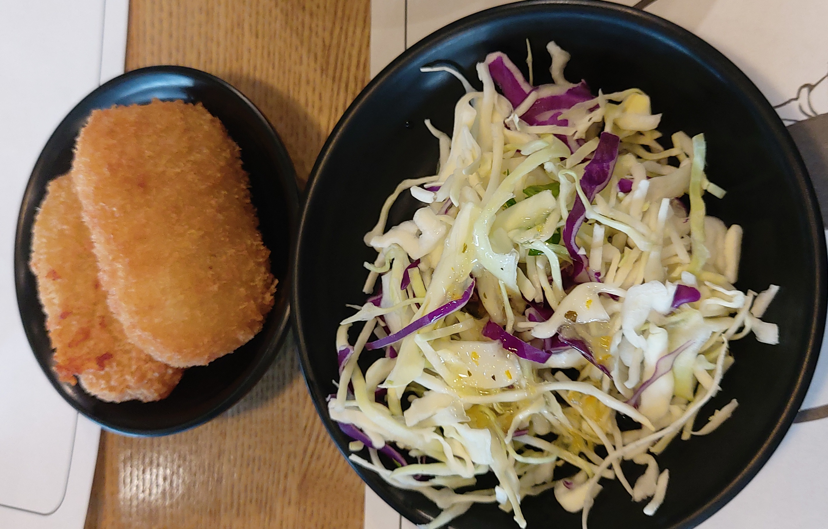 감자고로케와 샐러드, 장국이 나오네요.