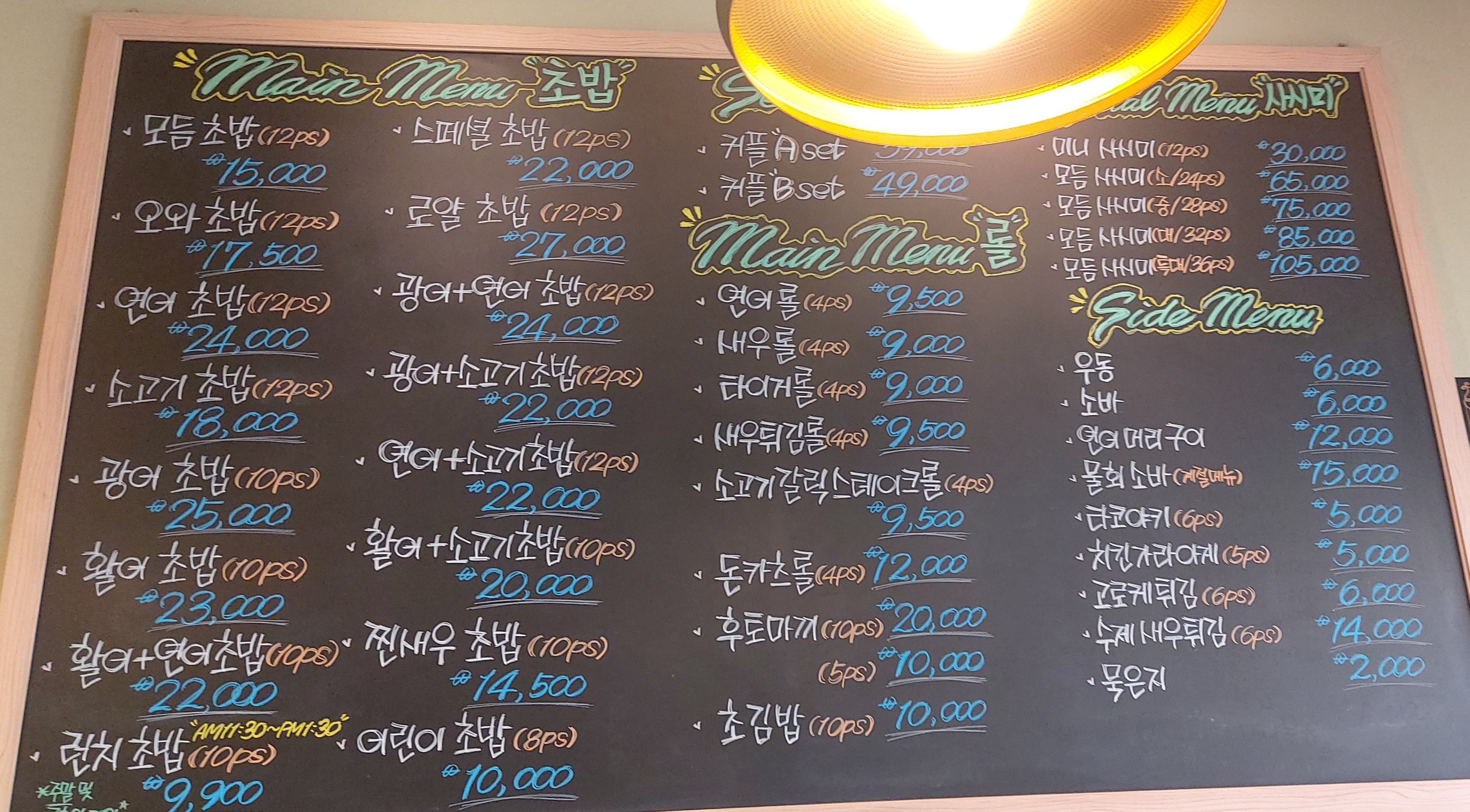 11:30~1:30까지 런치 초밥을 이용하실 수 있고요, 주말 및 공휴일은 제외입니다.