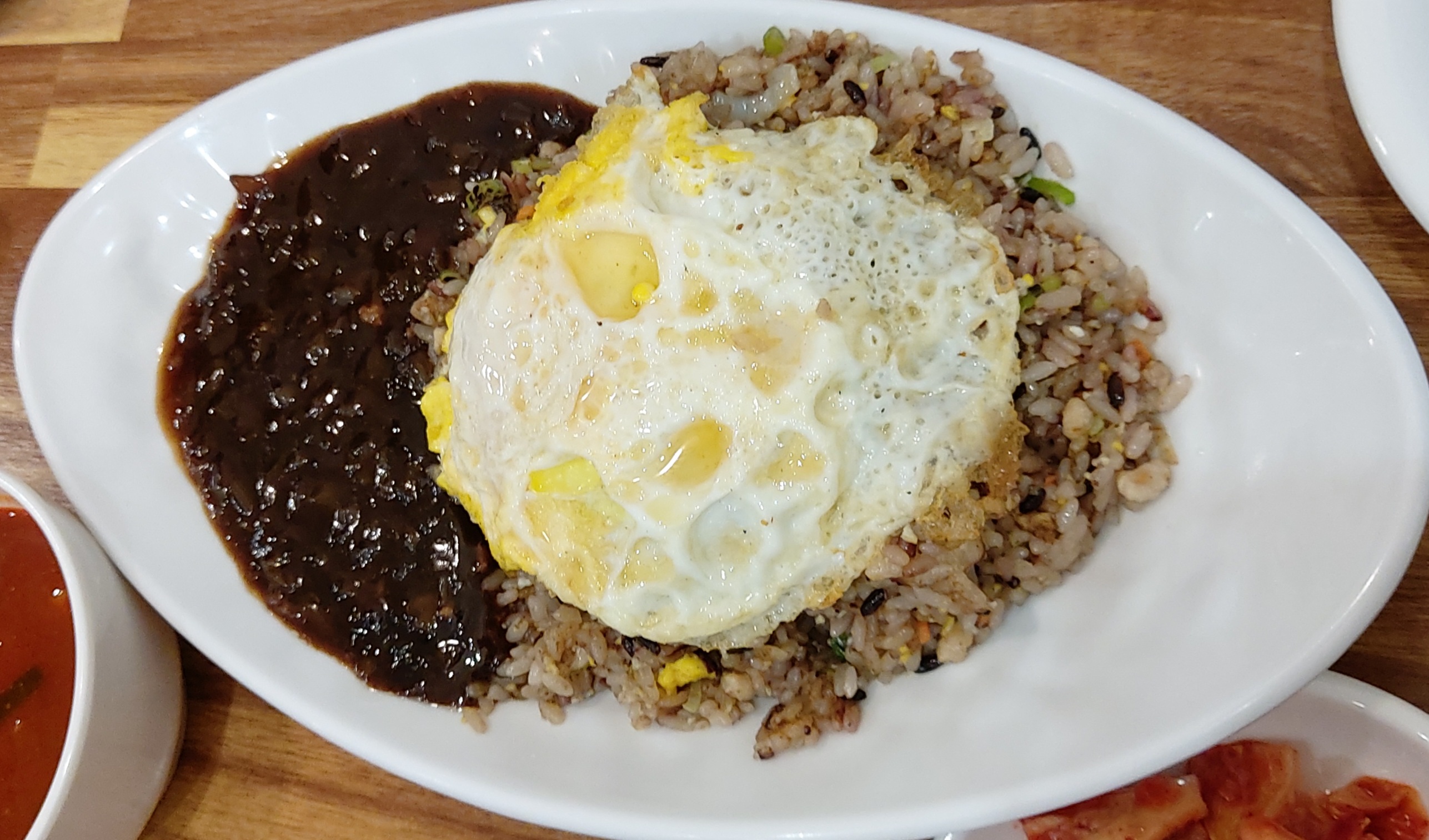 불맛나는 볶음밥에 계란 하나를 무심한 듯 툭 얹혔습니다.