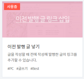 블로그 설정에 들어가셔서 '플로그인' 설정하고, '이전발행글 링크삽입'을 적용하시면 됩니다.