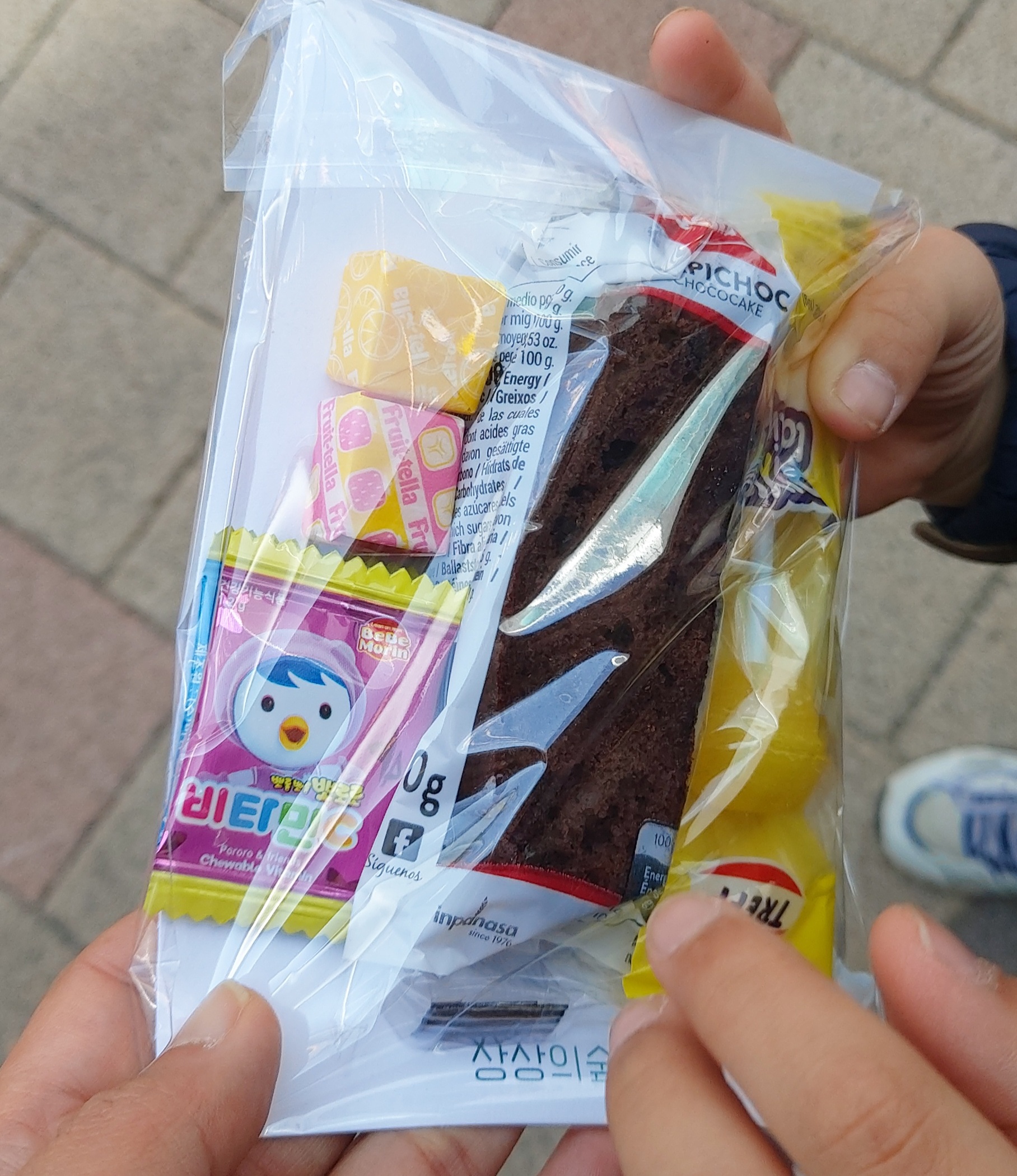 고객만족설문조사에 참여하면 요런 간식도 주시고 나중에 추첨을 통해 공연 티켓부터 치킨, 텐트 대박 선물까지 나눠주더라고요.