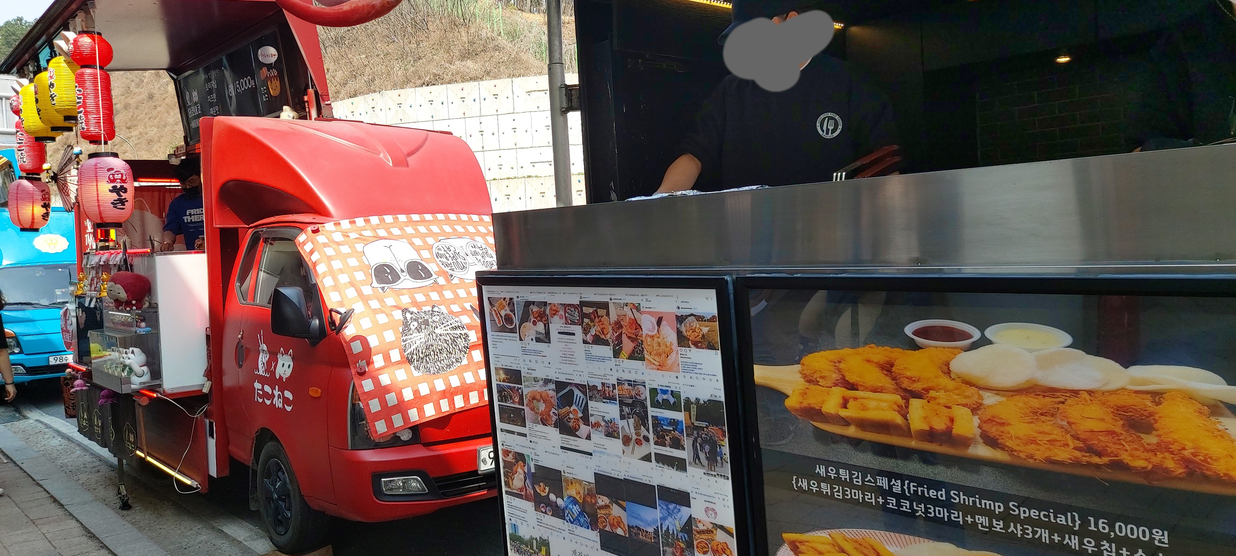 피자, 츄러스, 회오리감자, 새우튀김, 멘보샤, 타코야끼 요렇게 팔았어요.