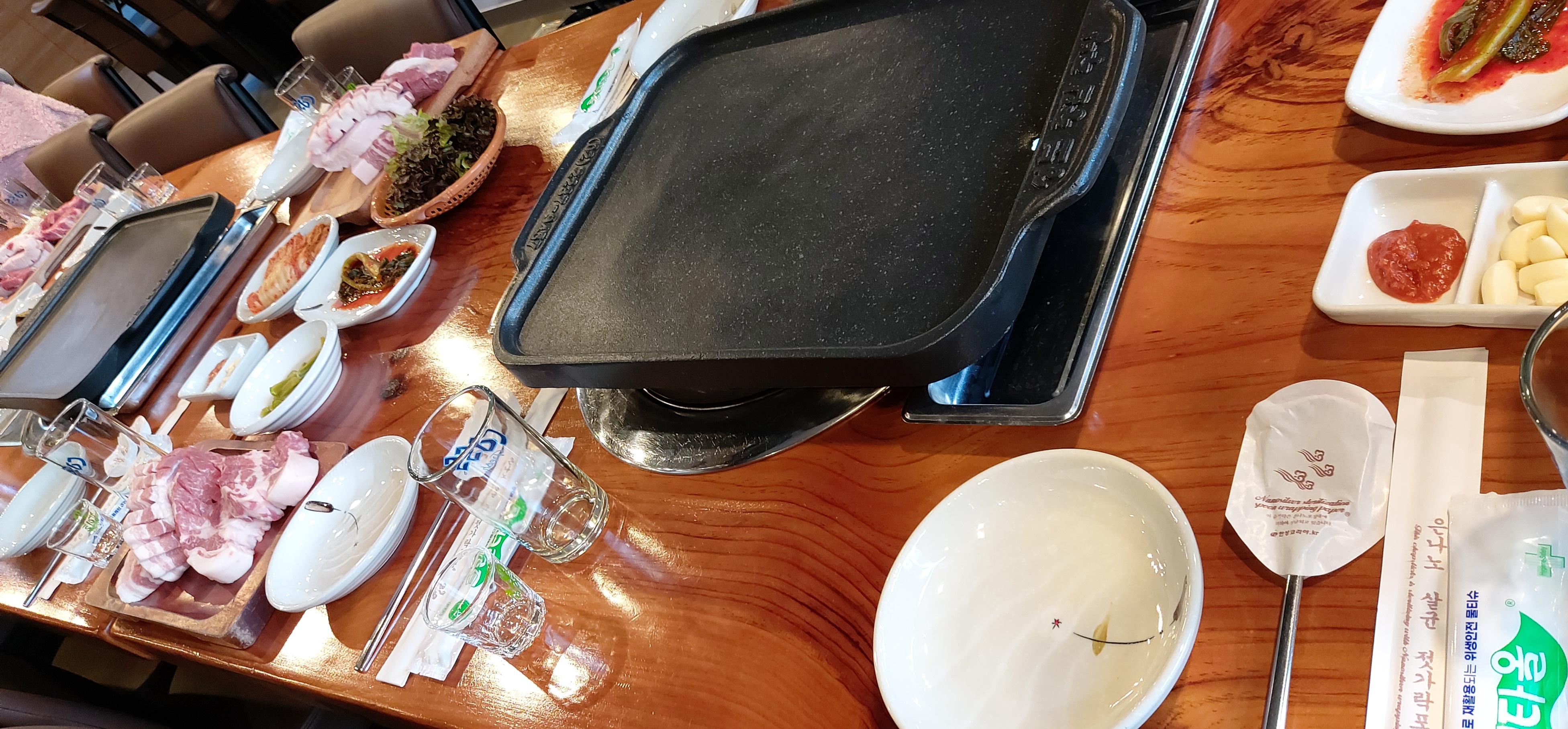 철판과 고기를 보니 배고 고파오기 시작합니다.