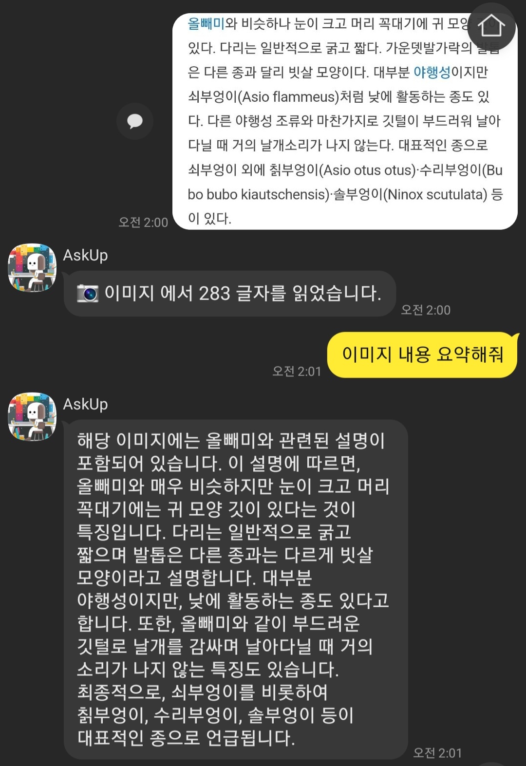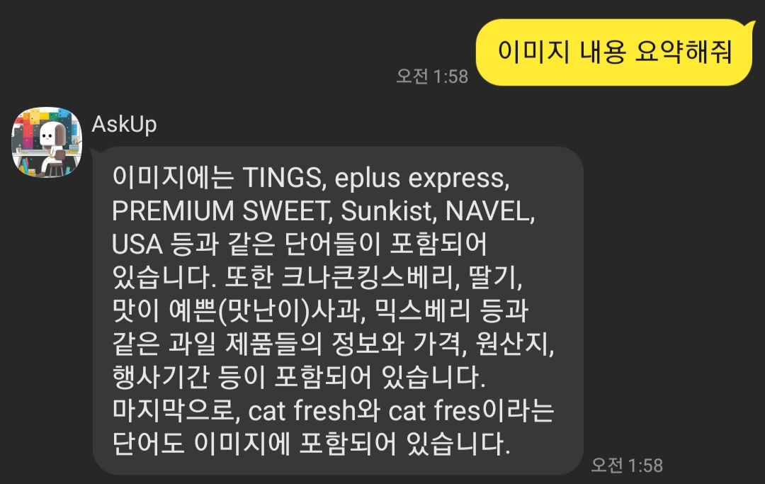 이미지 내용을 요약해달라고 하니 텍스트로 정리해주네요.