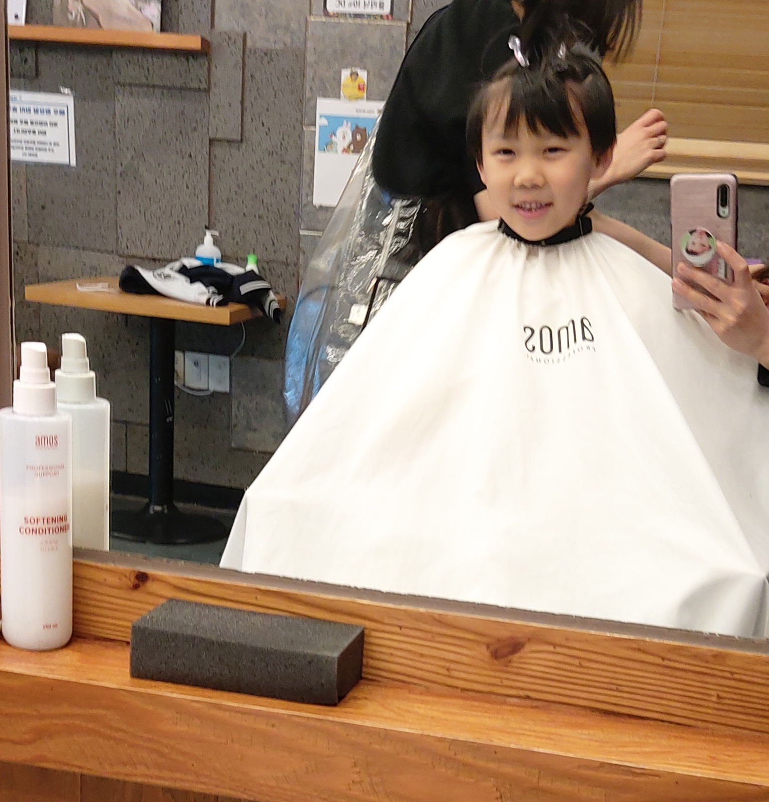 가끔 제가 이용하는 헤어샵에 아들래미 머리하러 왔어요~