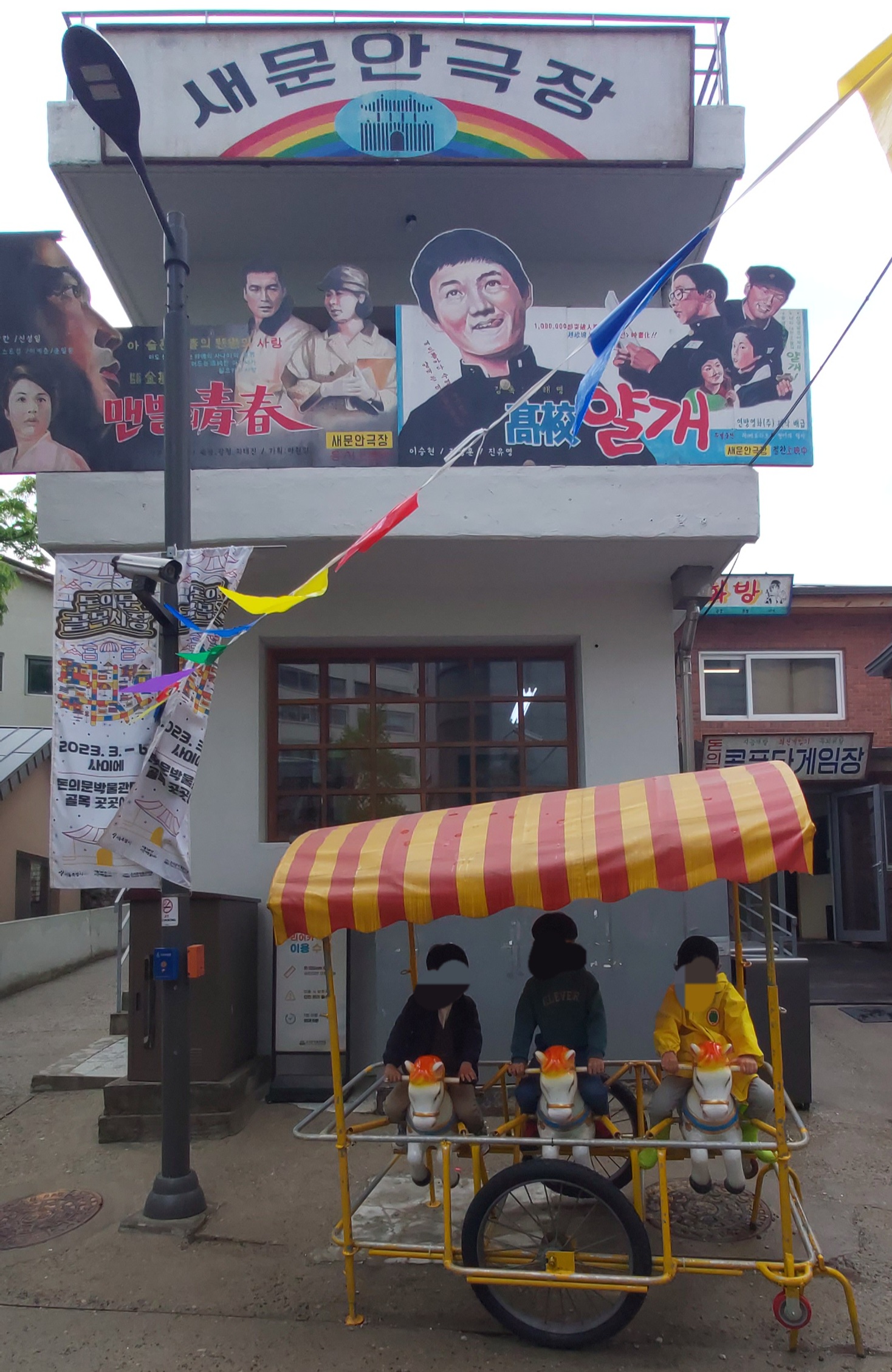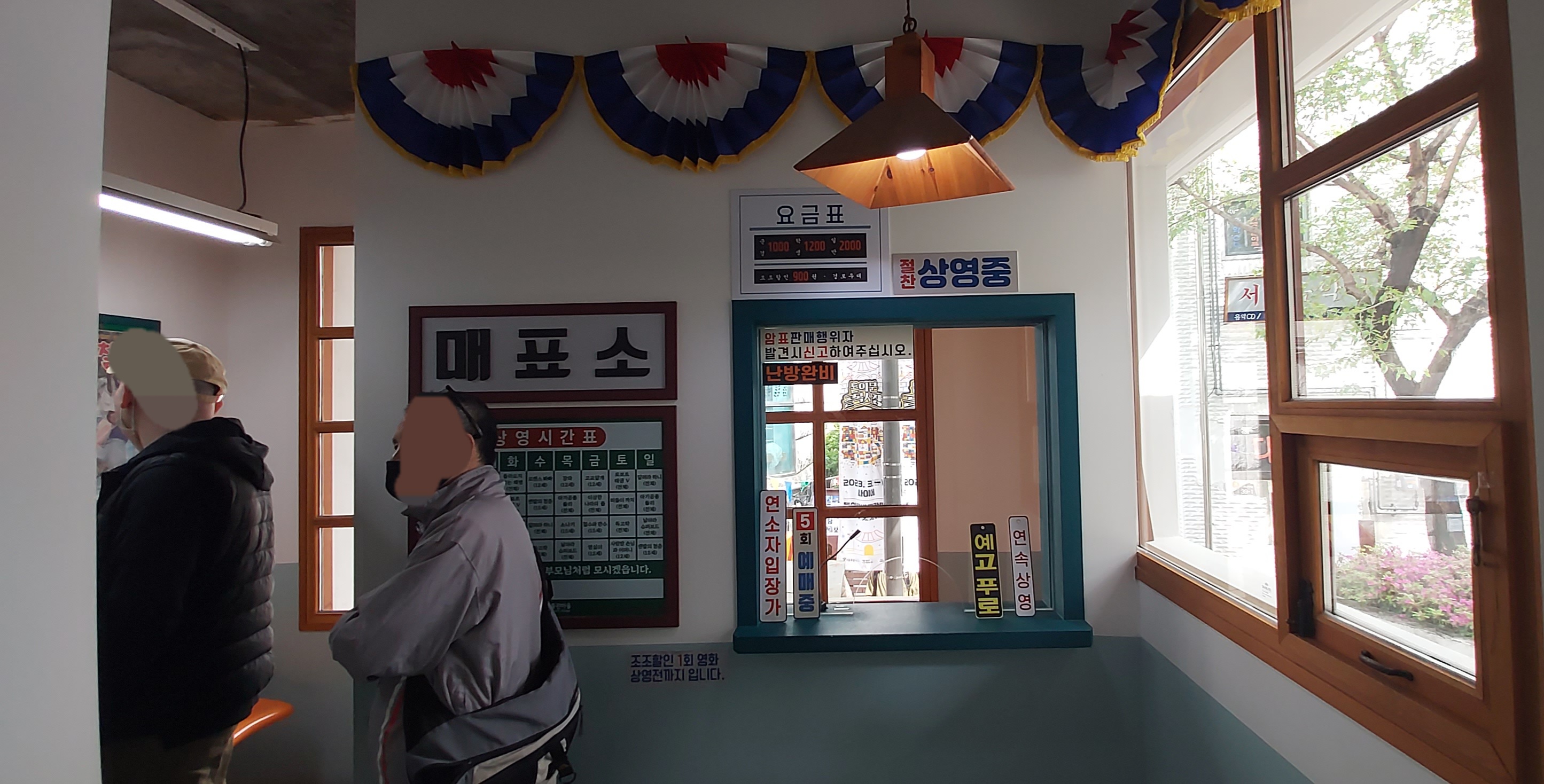 옛날 극장처럼 꾸며놨어요. 실제로 만화영화를 상영하고 있어서 관람하시면 됩니다.