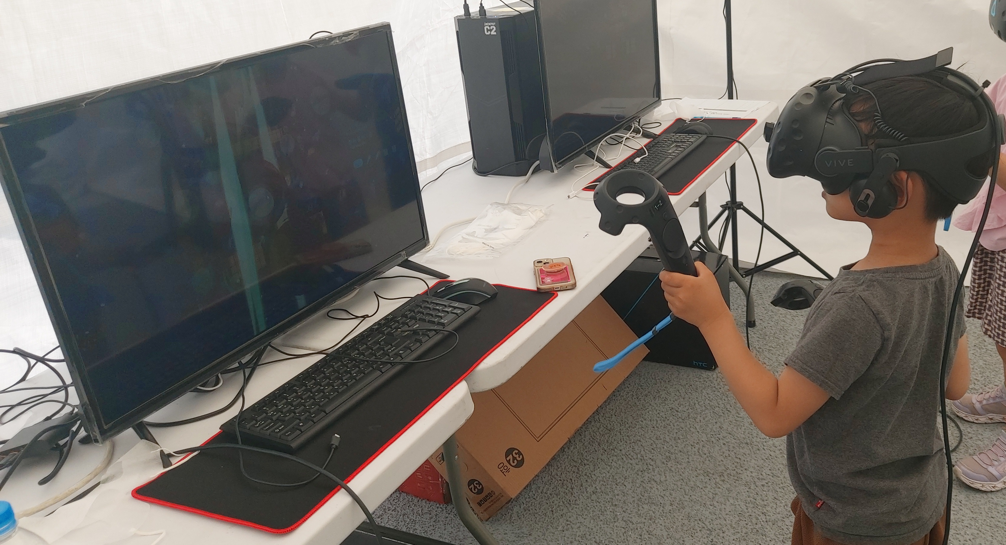VR 체험입니다. 게임형식으로 과일을 깨부수는 형태인데, 너무 재밌었다고 하더라고요.