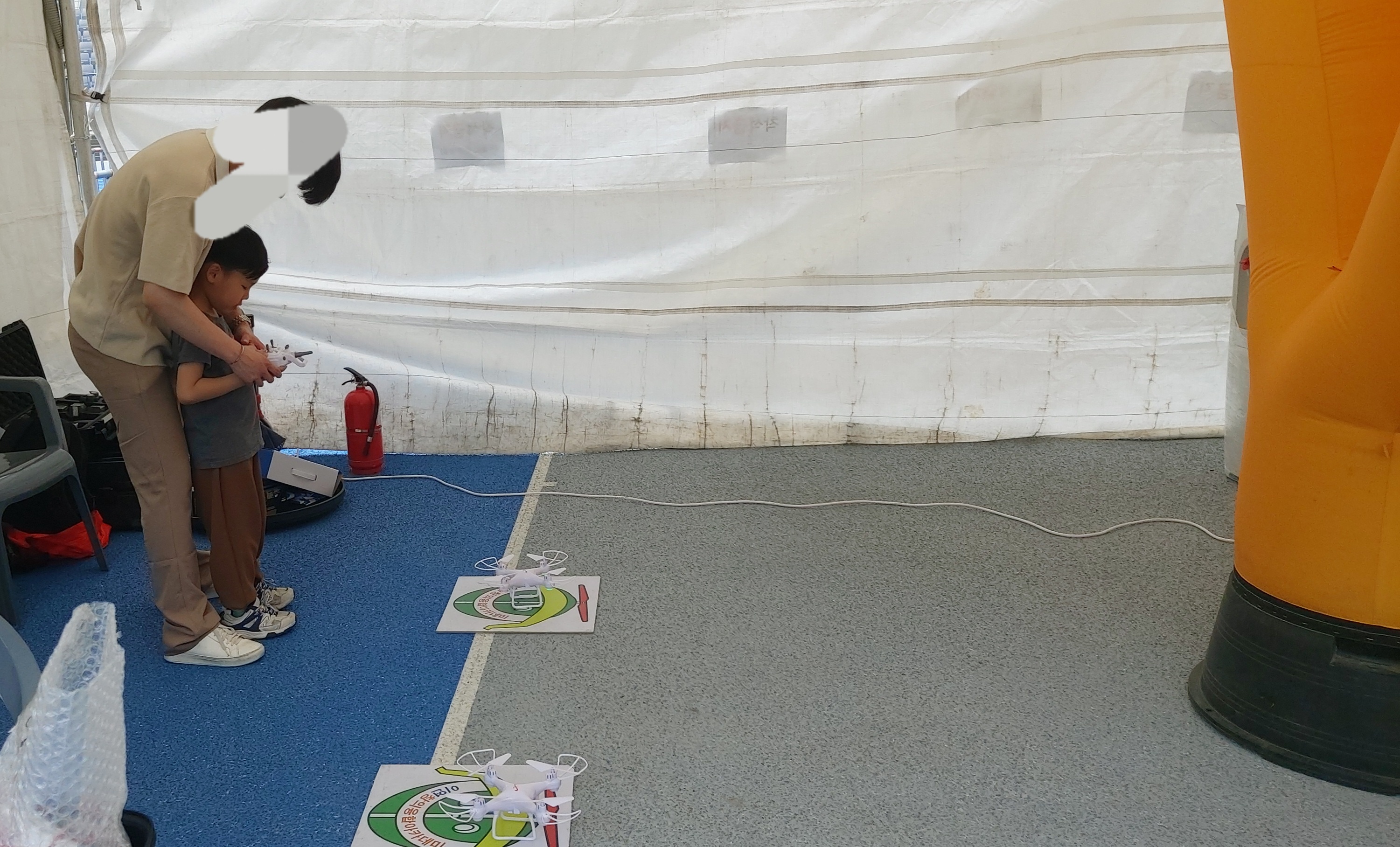 드론 체험입니다. 난생처음 드론을 날려보는 아들래미. 아주 신기한 듯 집중하였습니다.