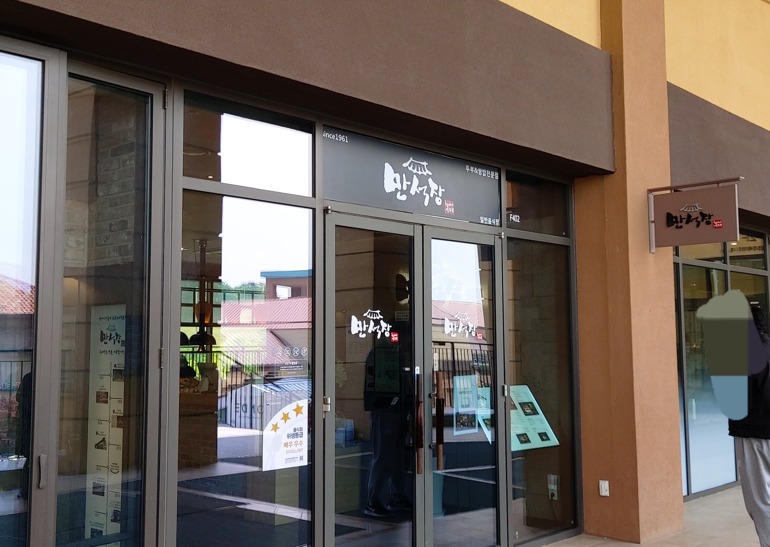 아울렛 2층에 위치해 있는 '만석장'이고요. 두부 요리 전문점 같습니다.