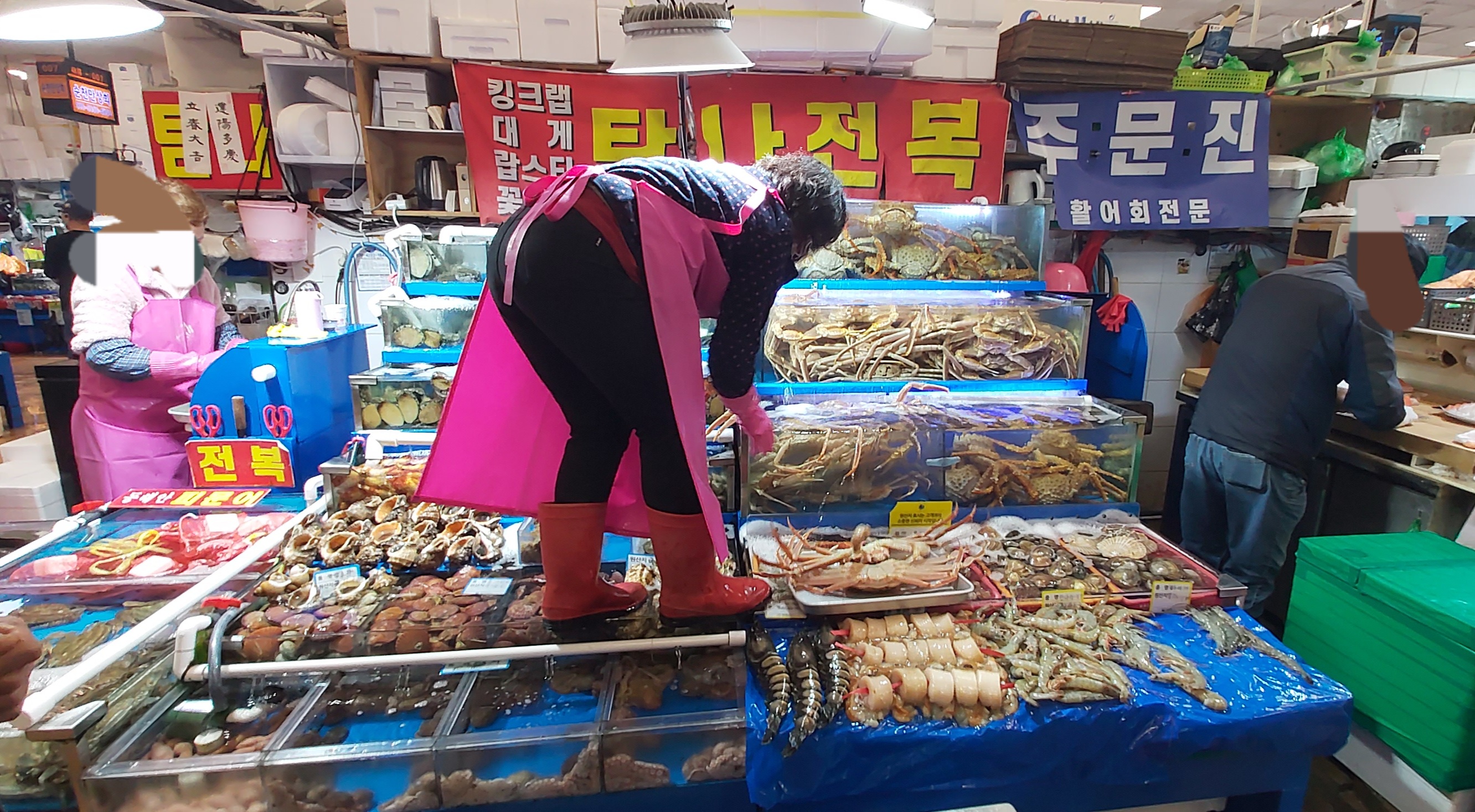 오랜만에 수산시장을 들렀는데 여전히 활기차네요.