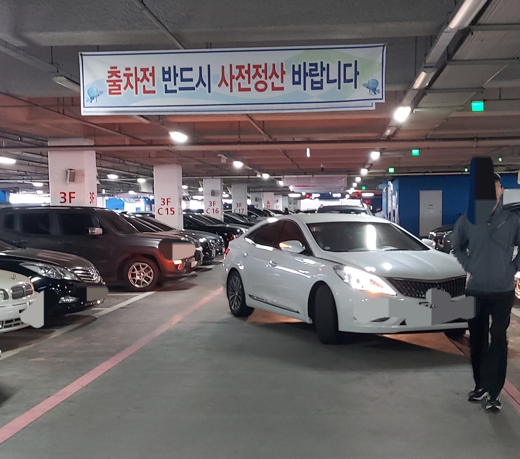 30분이내 출차 시 무료, 50분 이내 출차시 1000원, 이후 20분당 1000원입니다.