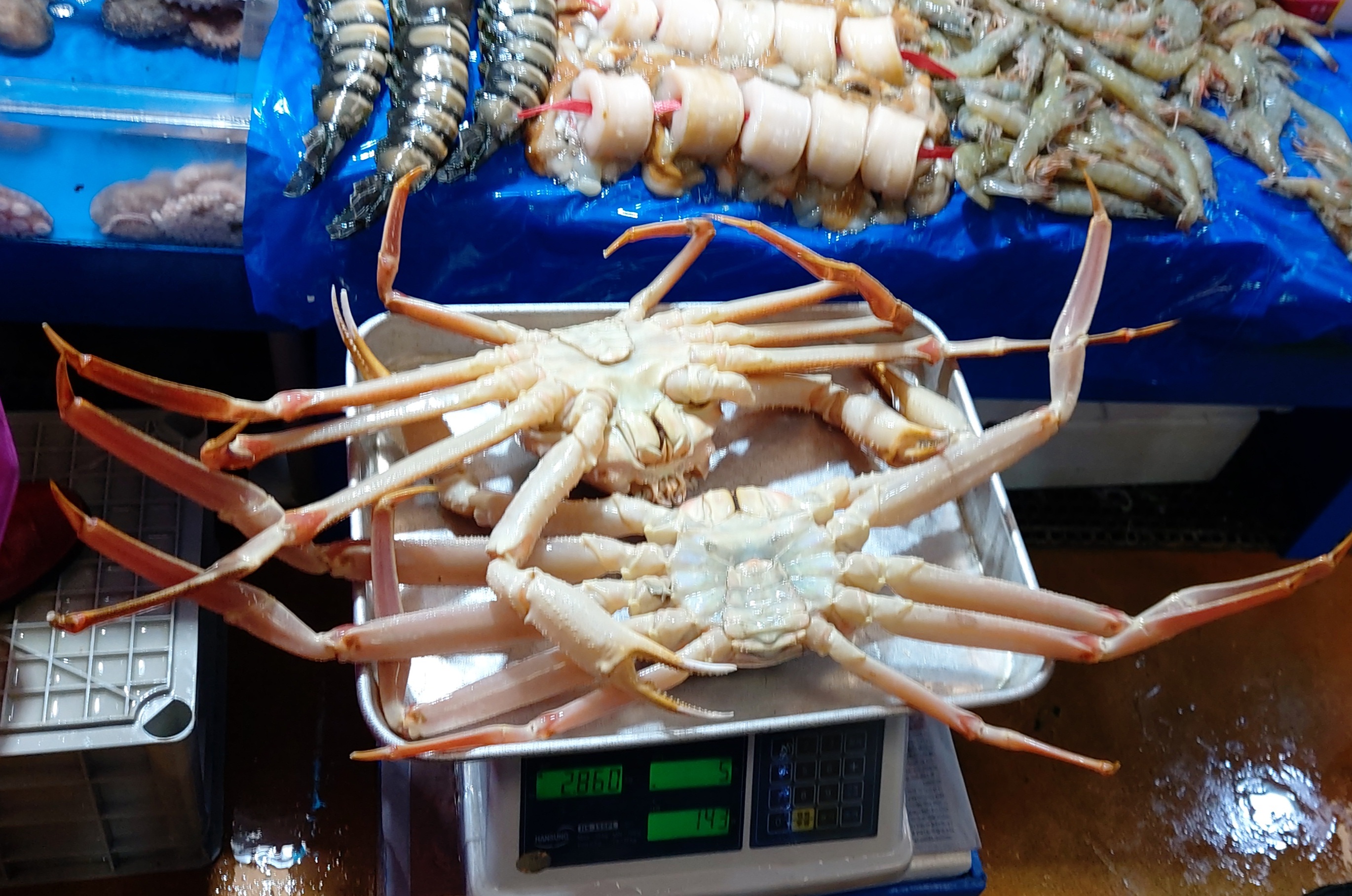 도매시장에서 구매한 대게를 하늘채 식당에서 쪄줍니다.