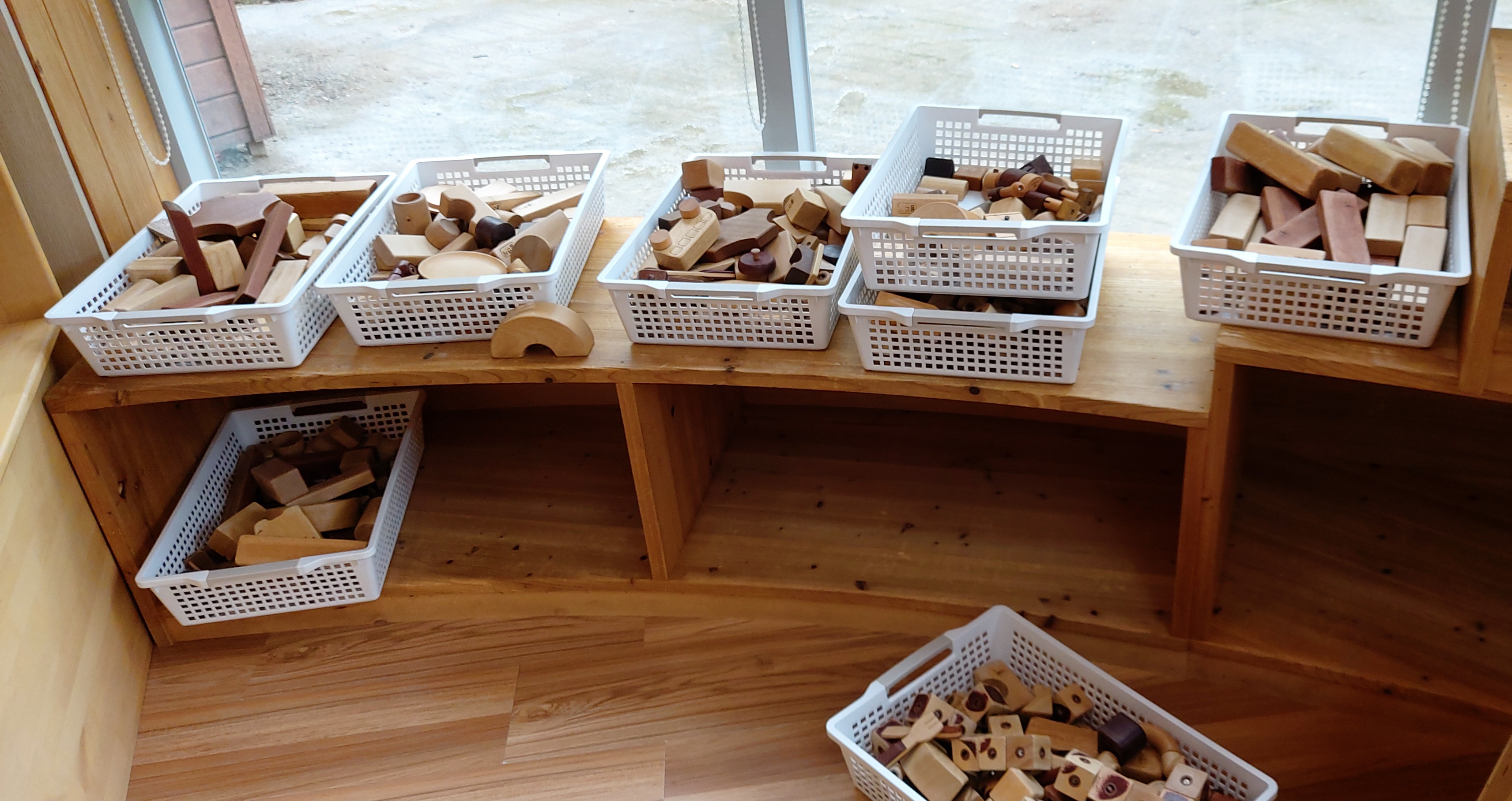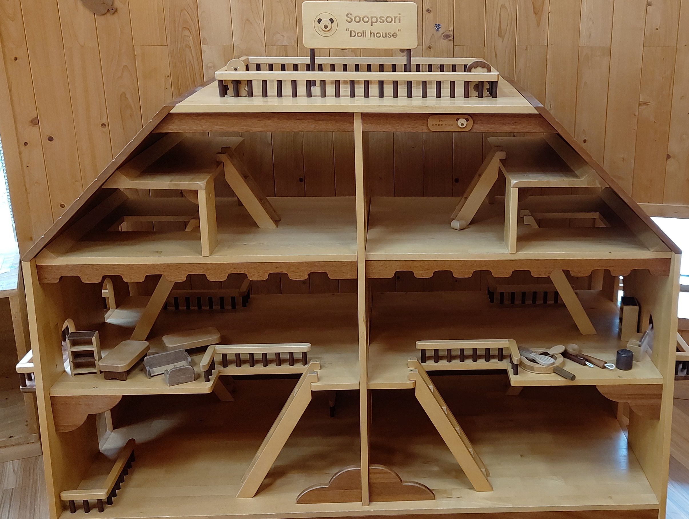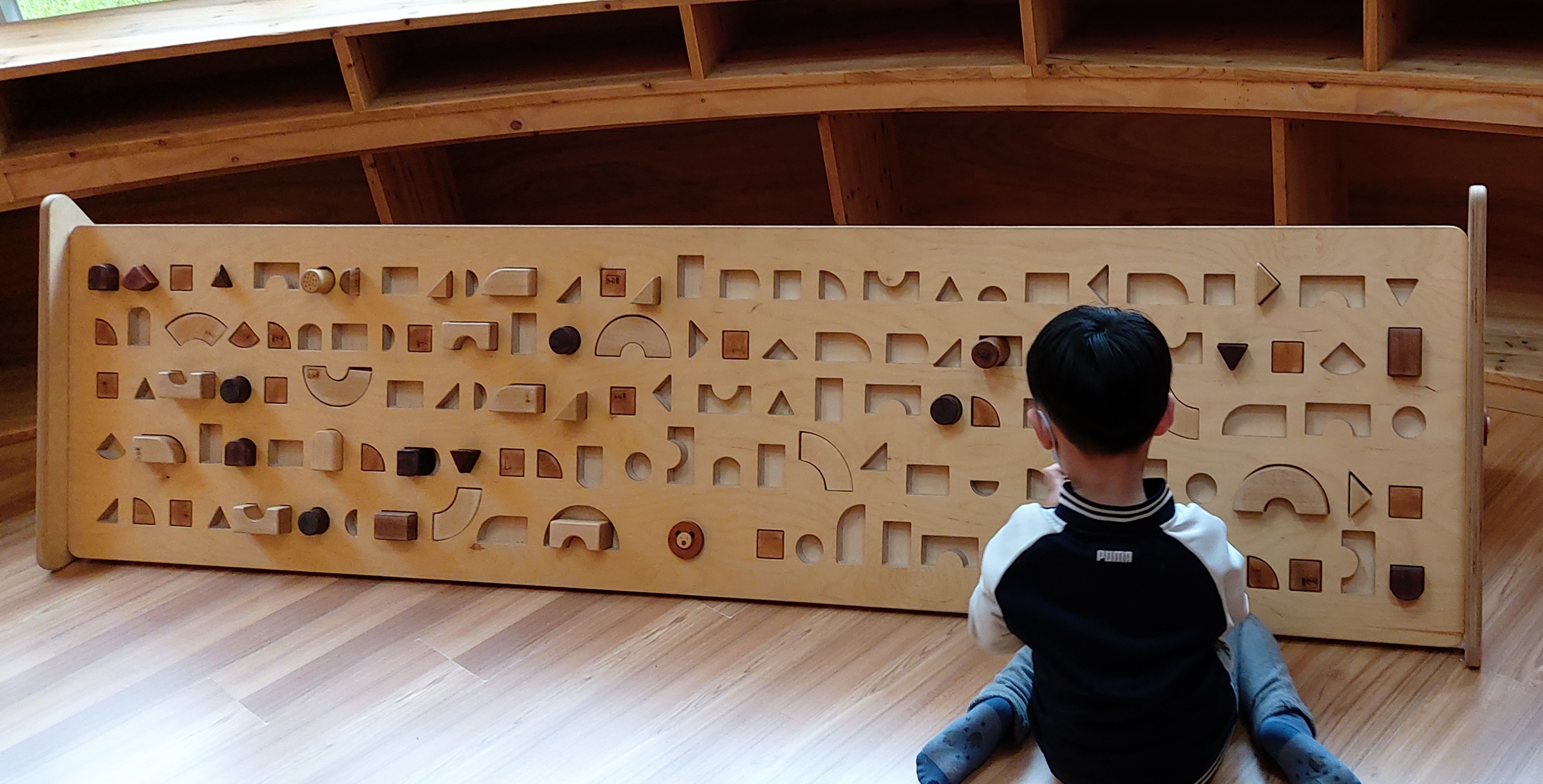그리 넓지는 않지만 다양한 목공 장난감이 있어요.