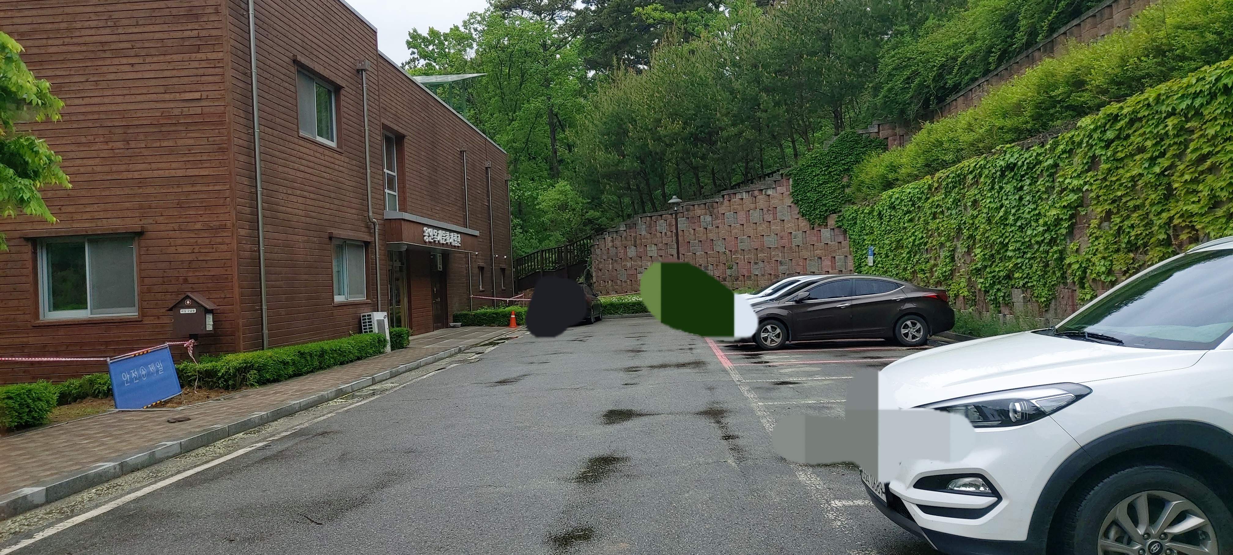 목재문화체험장 입구입니다. 용인자연휴양림 입구에서 좀 들어와야해서 차를 끌고 들어오셔서 건물 앞에 주차하시는 것이 좋겠습니다.