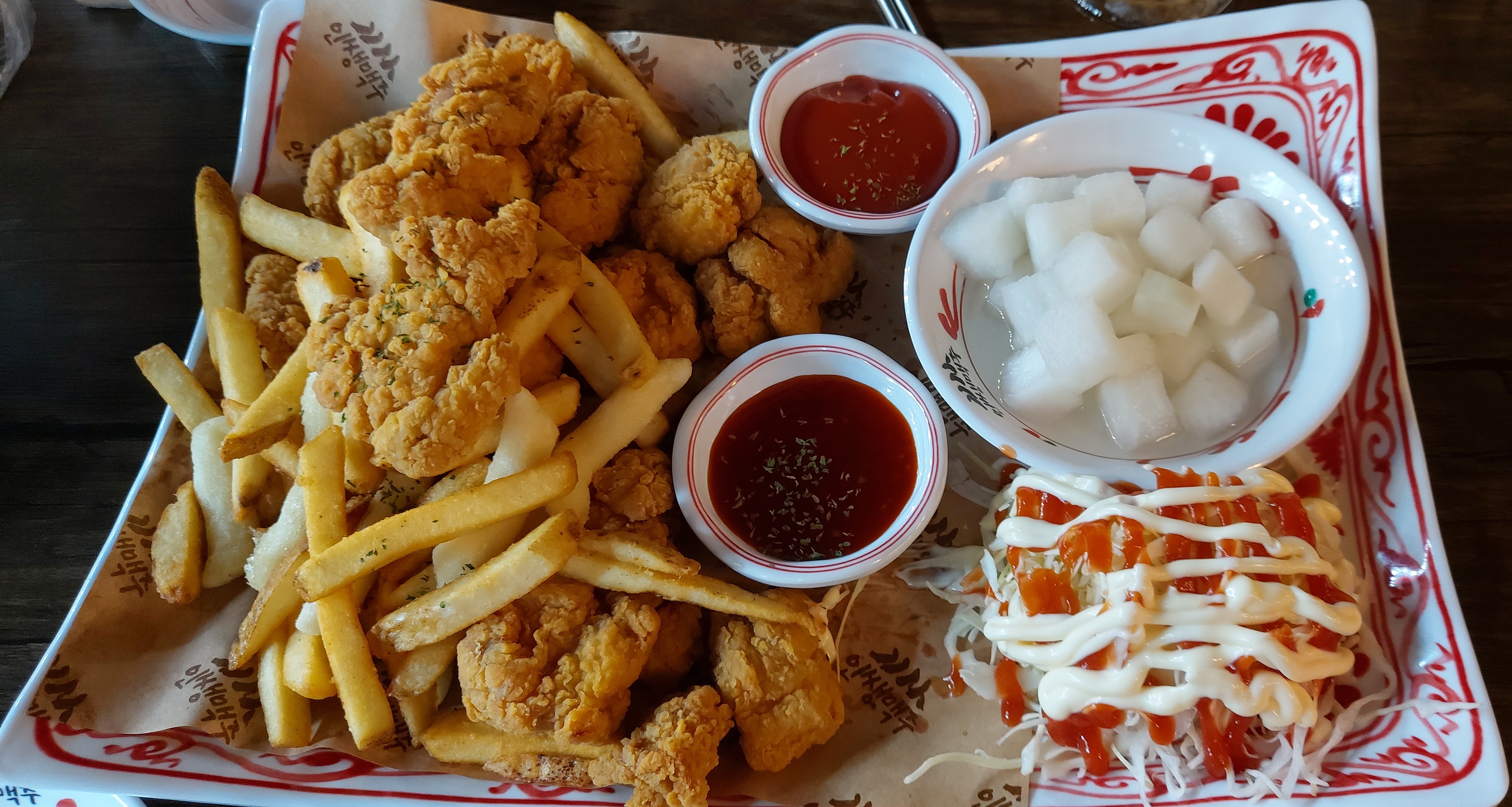가성비 대박이죠? 양도 완전 푸짐해요. 테이블마다 인생치킨 주문한데가 많더라고요.