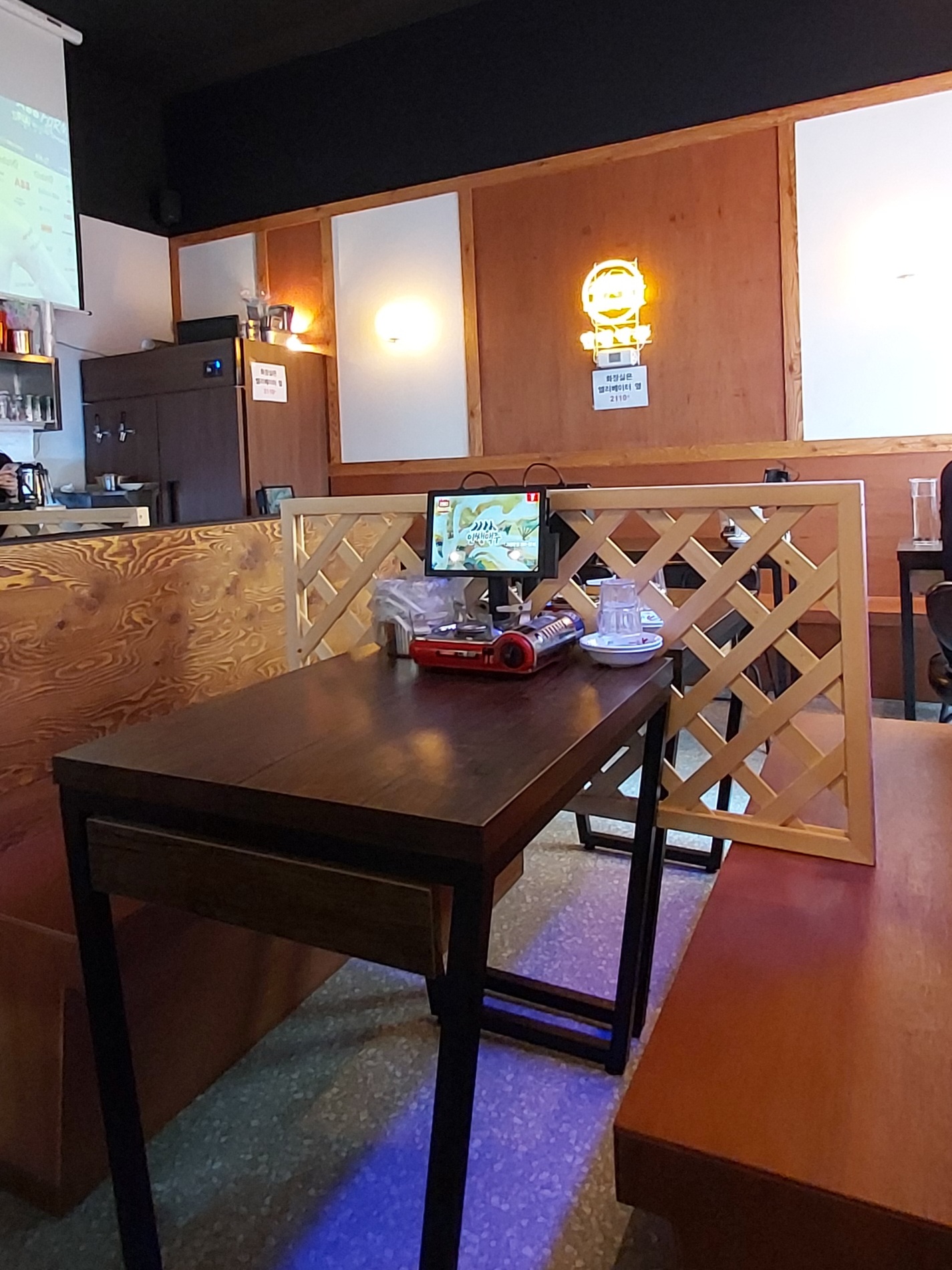 실내, 야외 테이블이 있습니다.