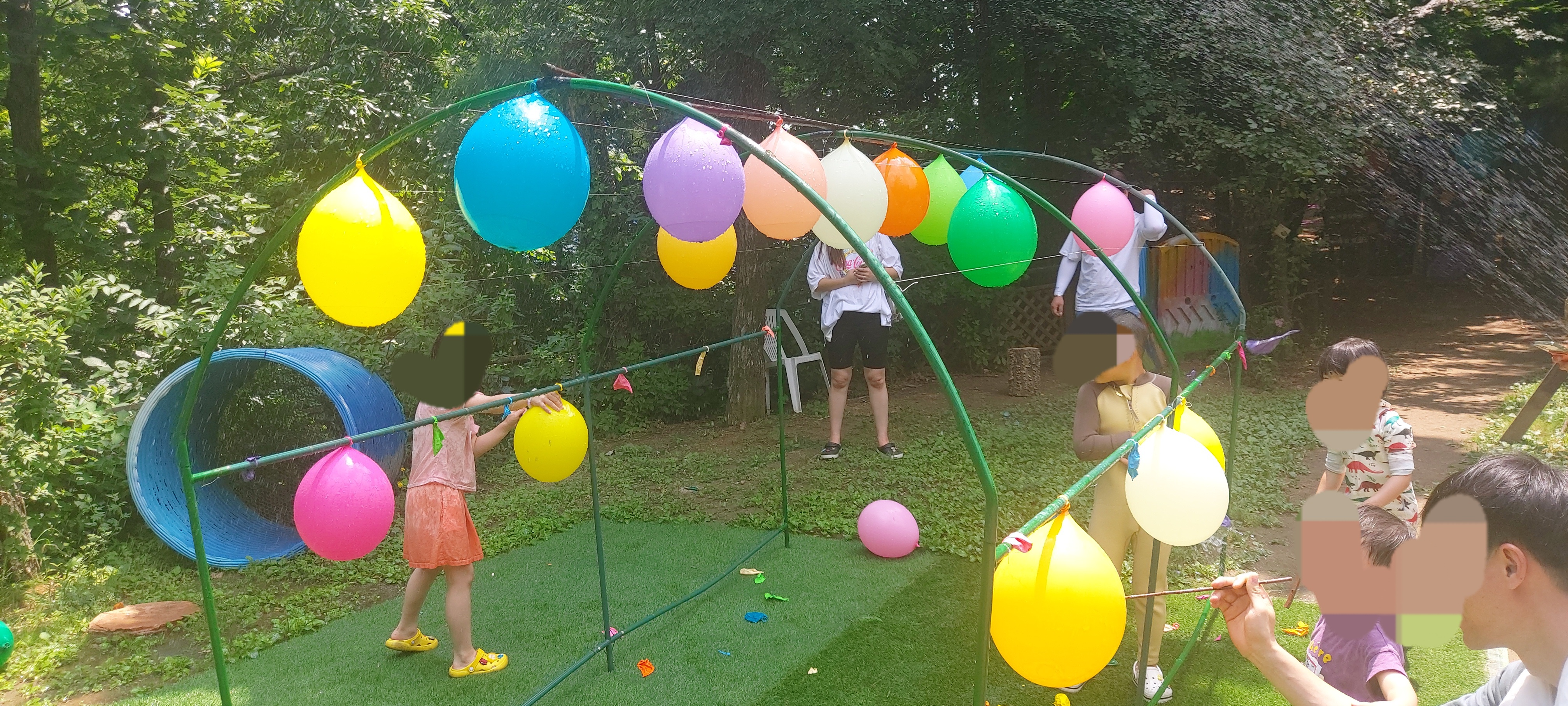 시원한 물놀이가 끝나고 그냥 끝내기 아쉬우니 물풍선 터뜨리기 퍼포먼스가 이어지네요.