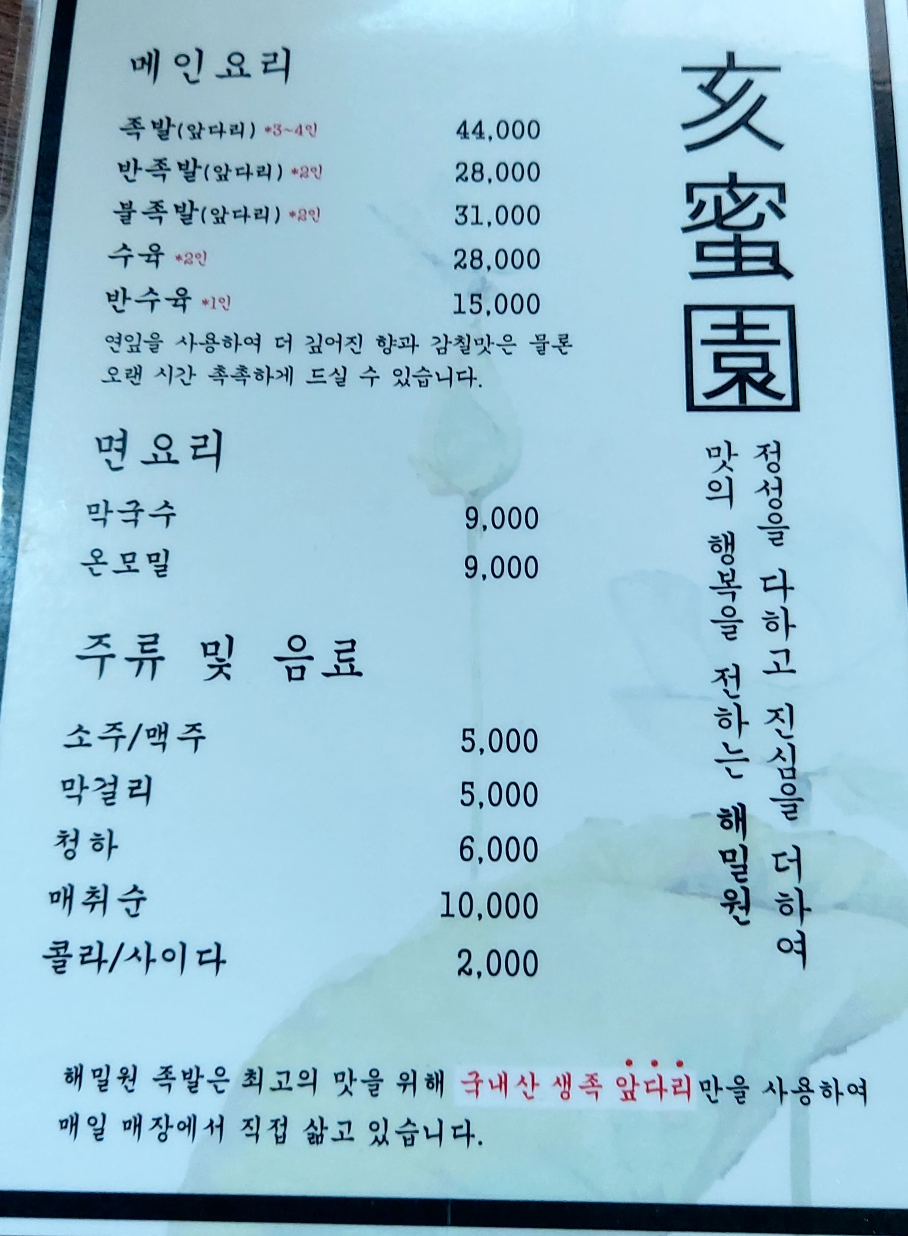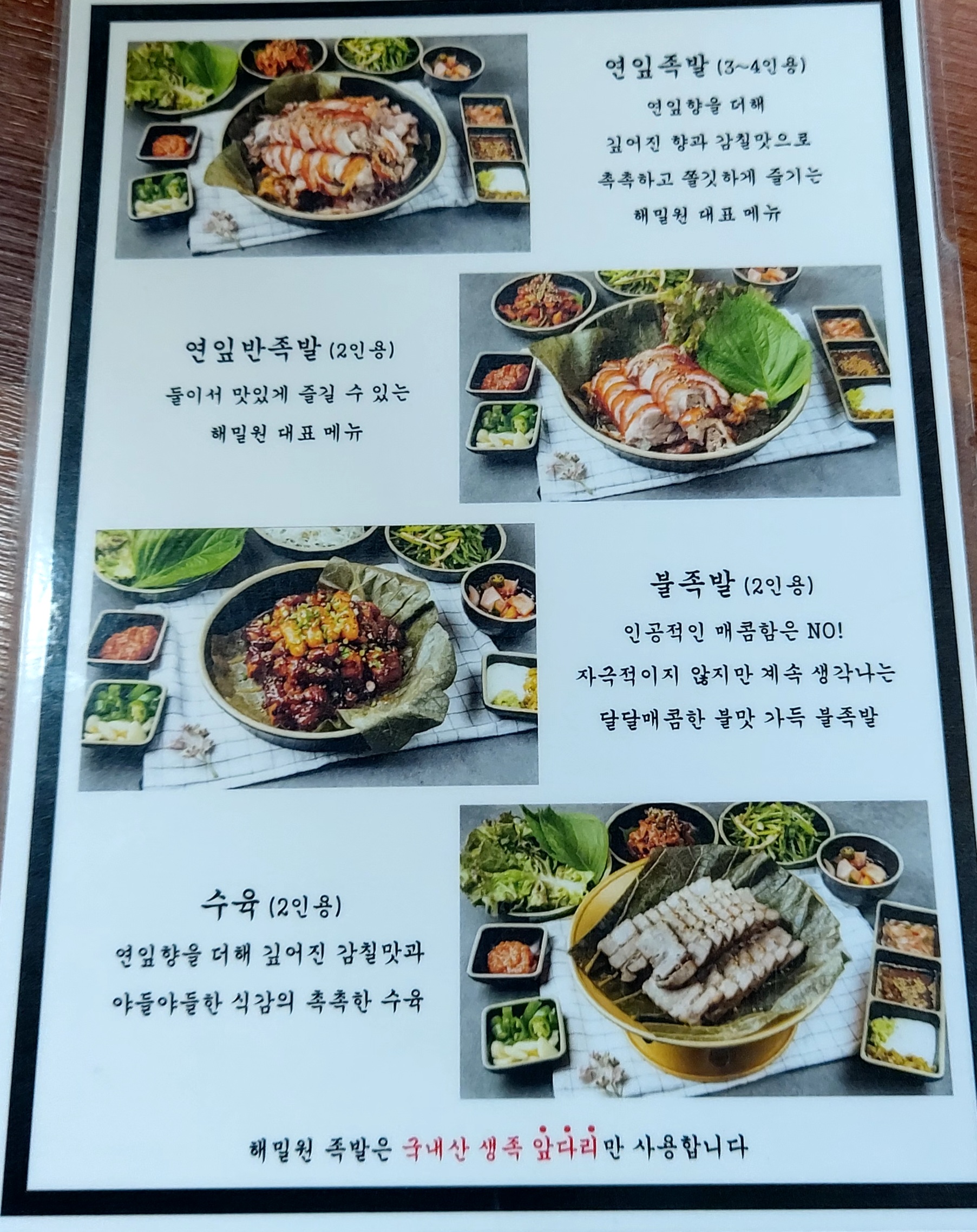 저희는 연잎 족발과 막국수를 주문했어요.