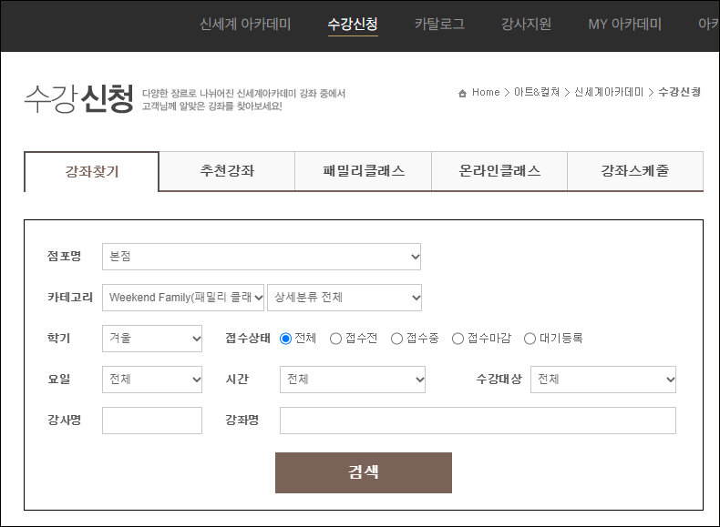 수강신청 | 신세계 아카데미 - 신세계백화점