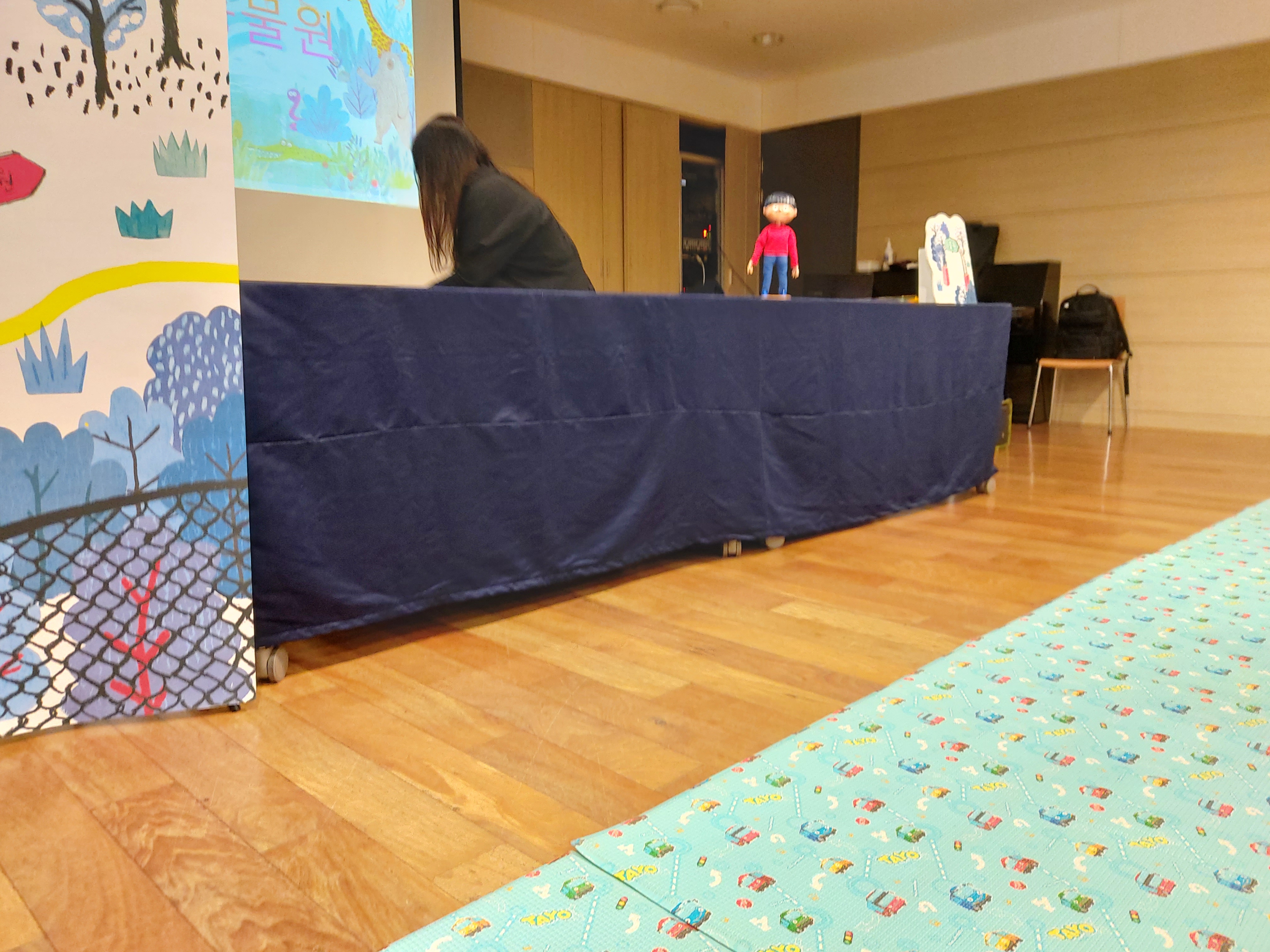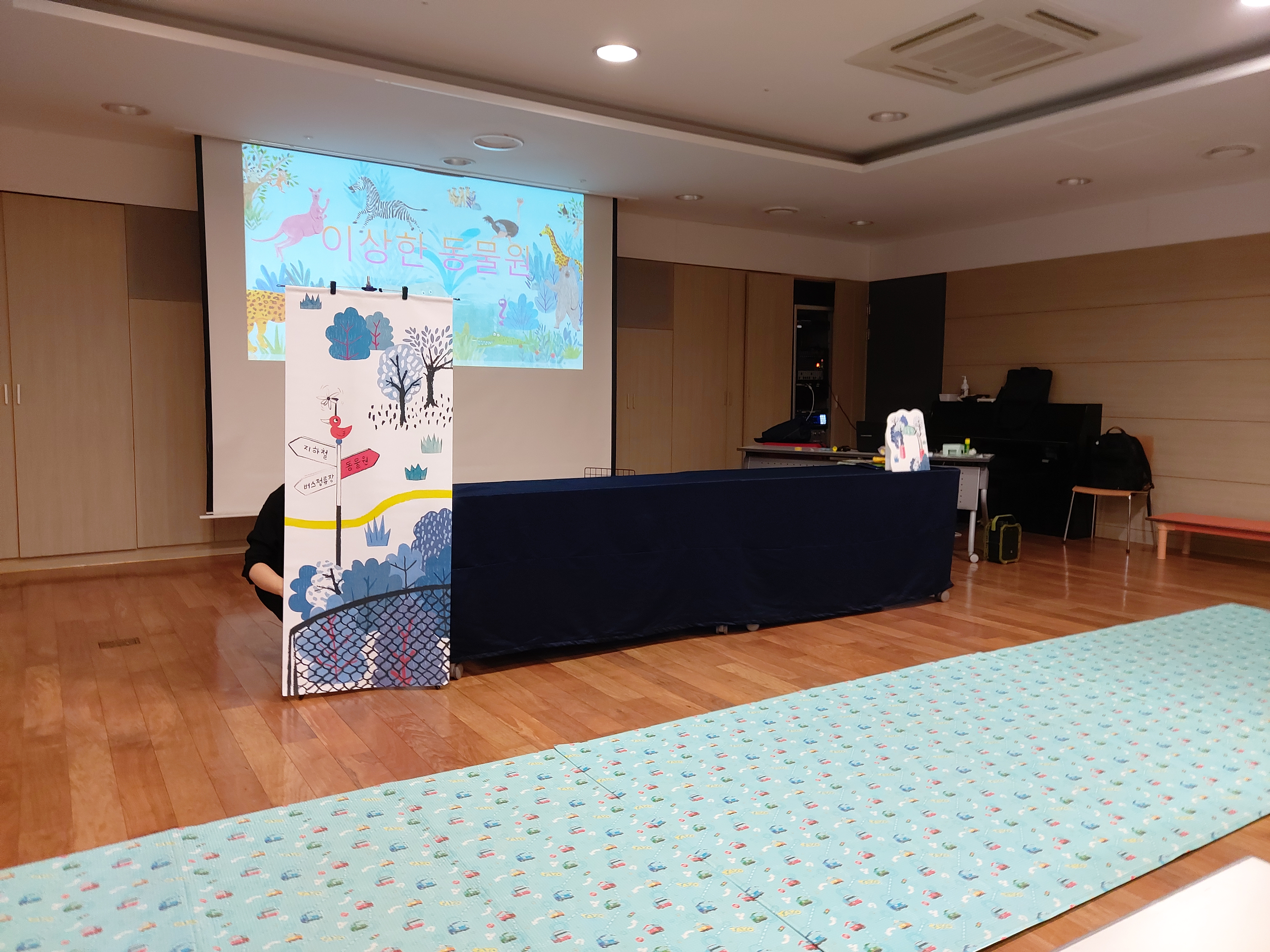 <이상한동물원> 도서의 작가님이 이야기를 들려주며 자그만한 인형극을 해주십니다.