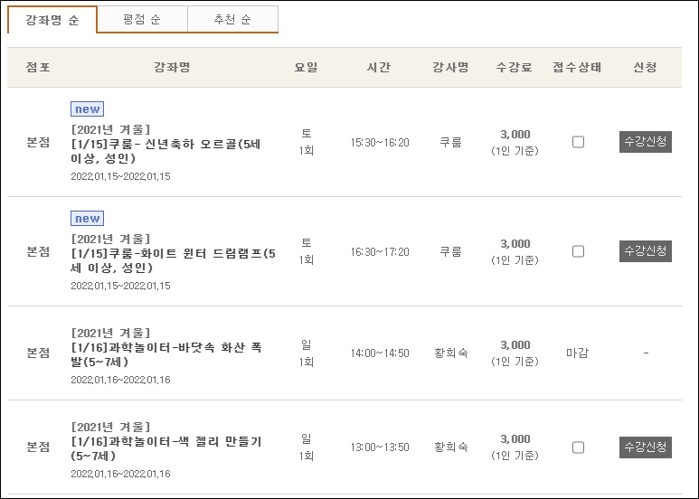 인기많은 강좌는 조기에 마감되니 서둘러야 합니다.