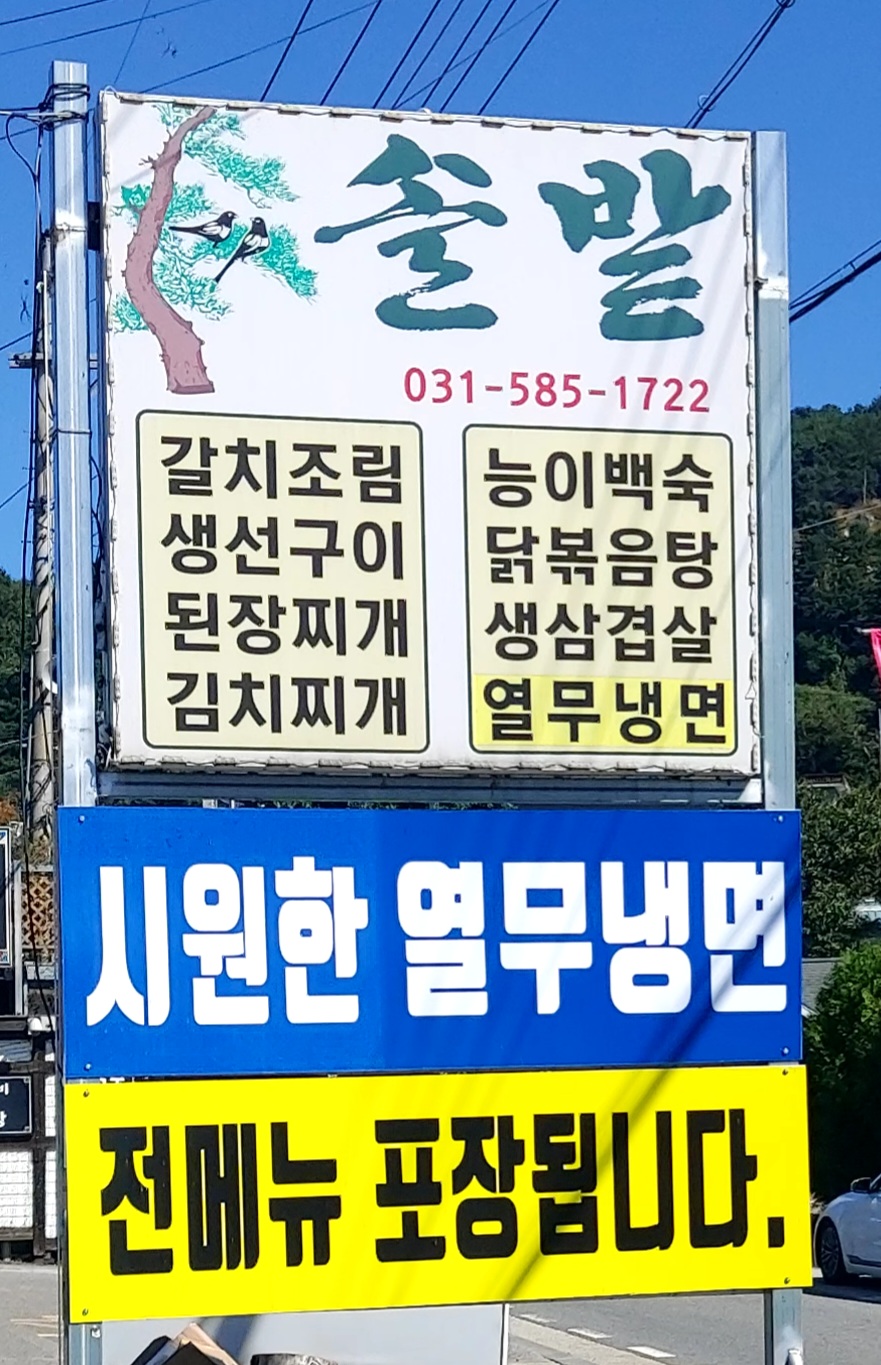 수목원 가는 길목에 위치한 '솔밭'이라는 식당입니다.