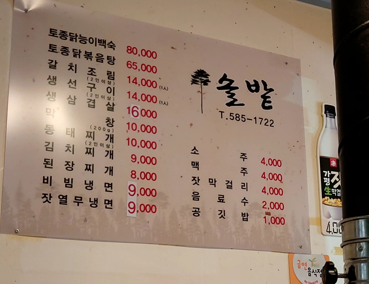 사장님도 친절하시고 음식도 맛있는 솔밭 추천합니다^^