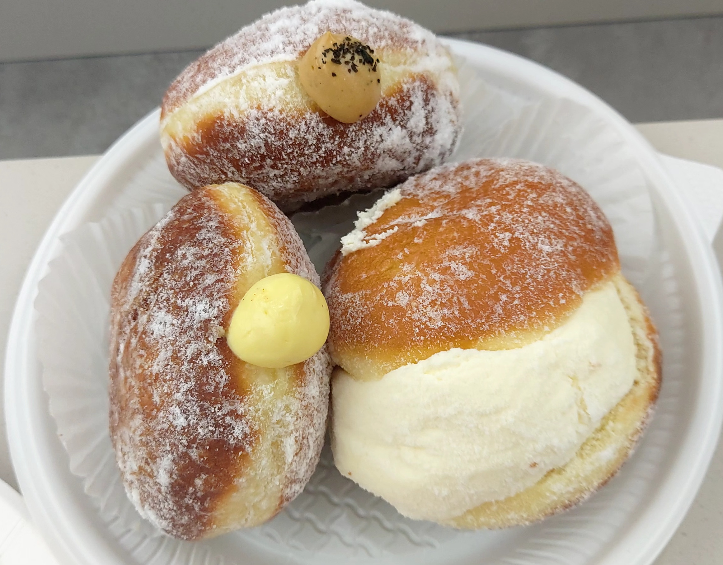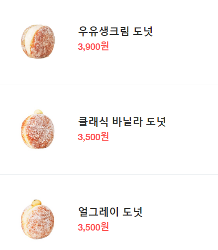 우유 생크림, 클래식 바닐라, 얼그레이 도넛으로 주문했어요.