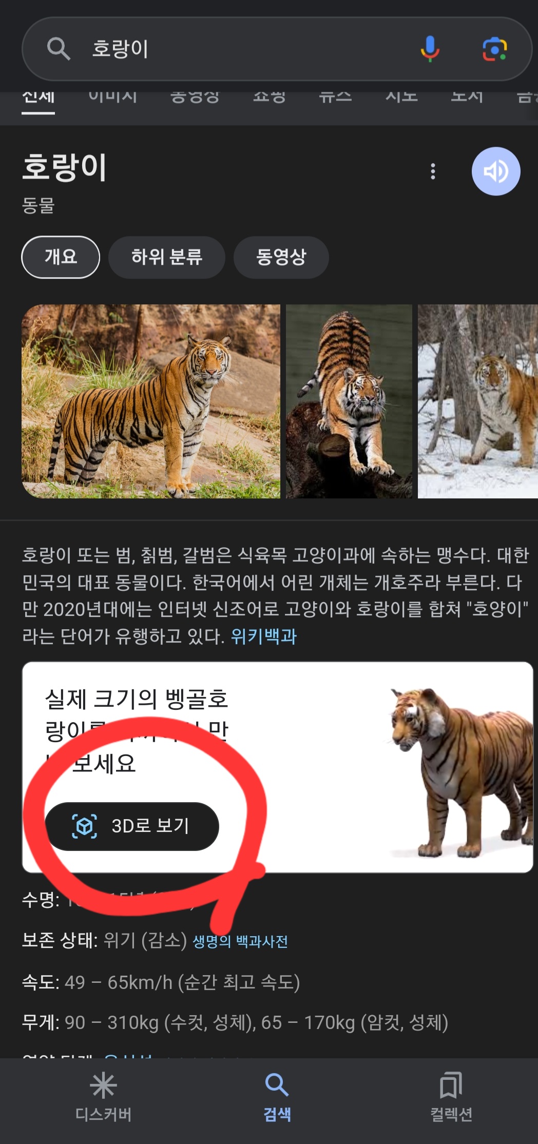 아쉽게도 모든 검색어가 증강현실 체험되는건 아니고