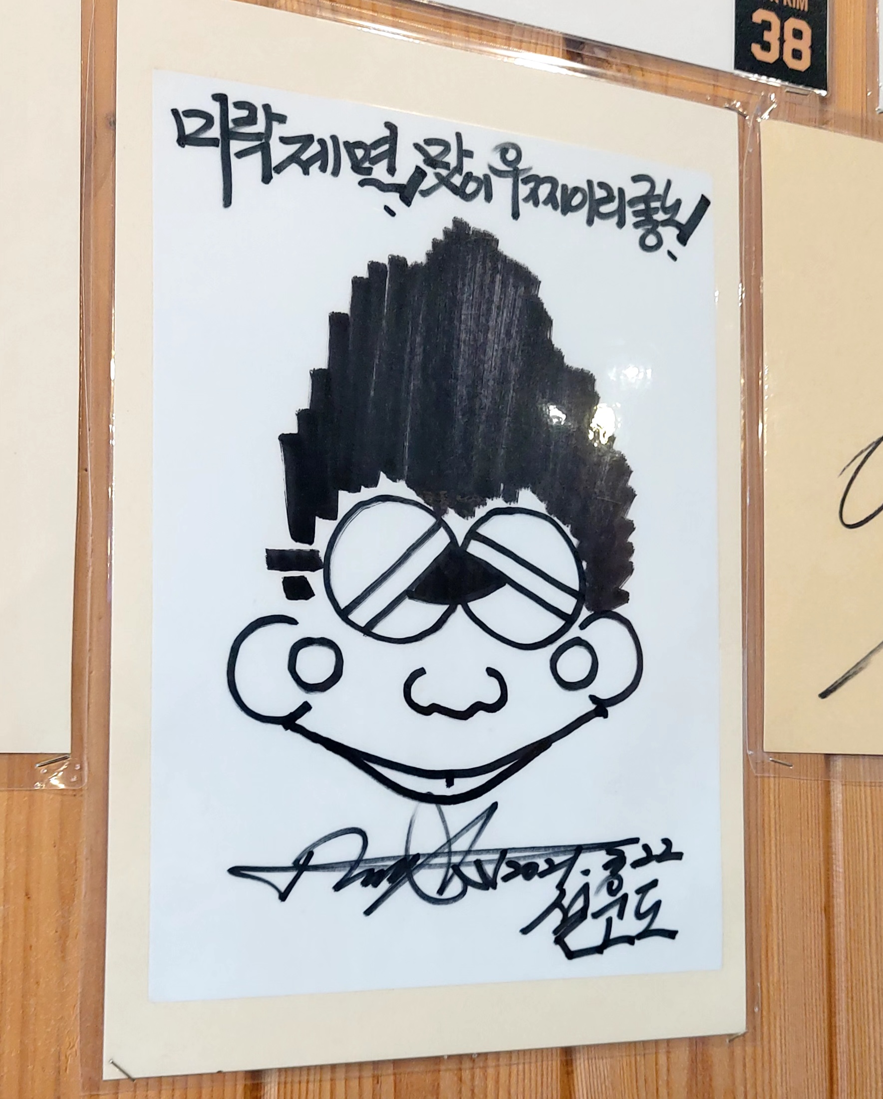 벽 한켠에 사인이 많이 붙어있네요.