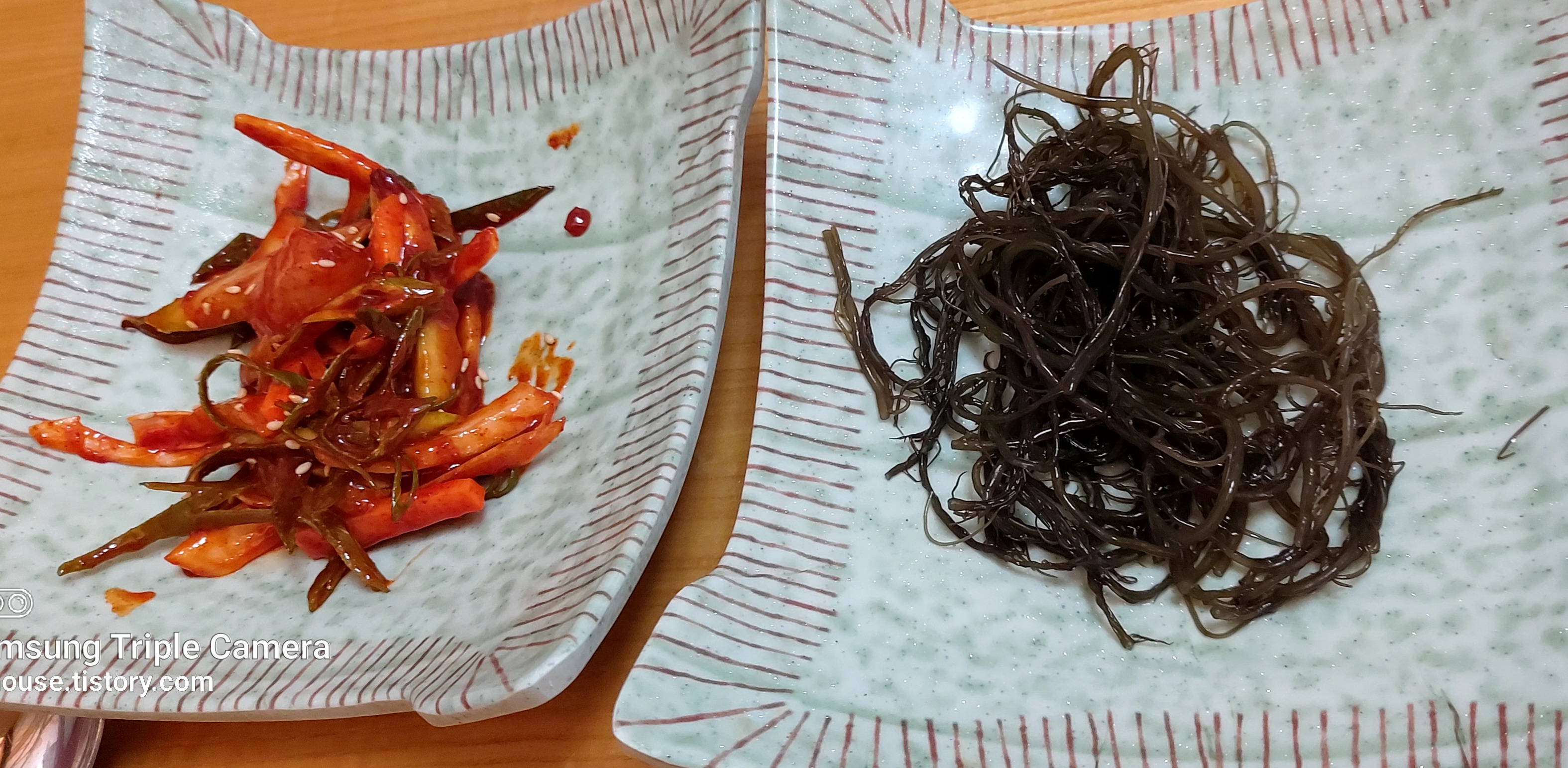가자미 찜과 회가 나오네요. 간단히 한자하기 좋은 안주들입니다.
