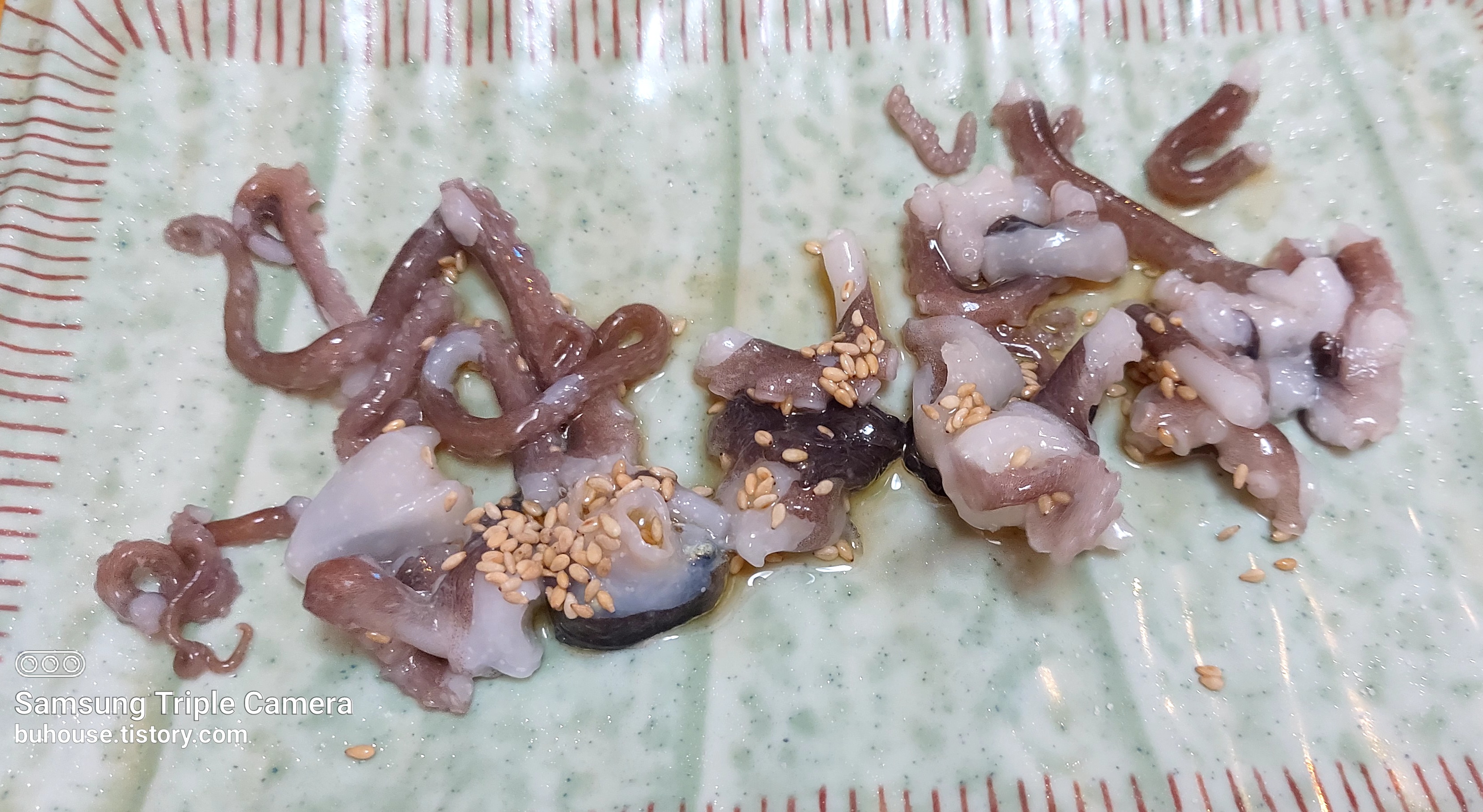 움직이는 산낙지를 아주 신기하게 만져보는 우리 아들래미^^