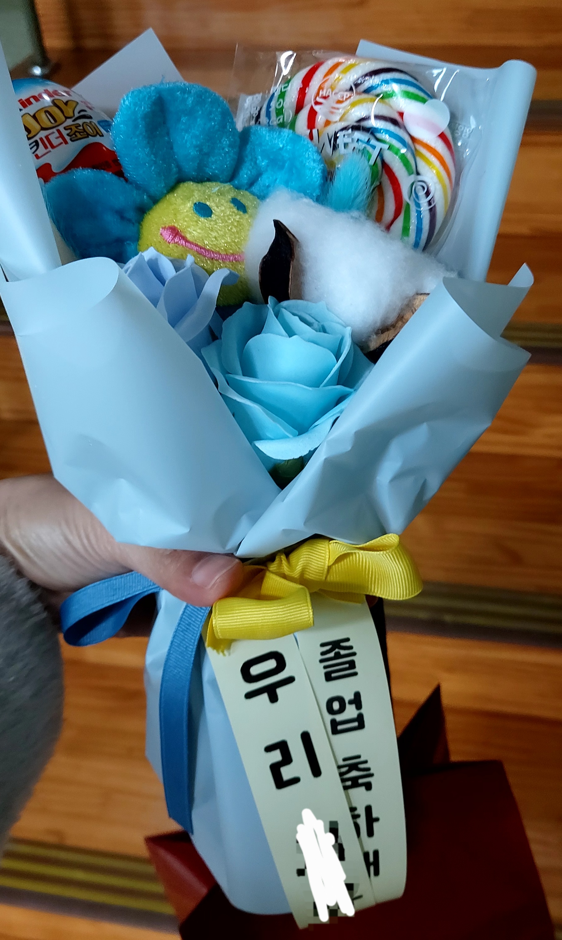 귀염뽀짝 비누꽃 스마일인형 미니 예쁜 작은 졸업 꽃다발 사탕 유치원 재롱잔치 발표회 : 플래니