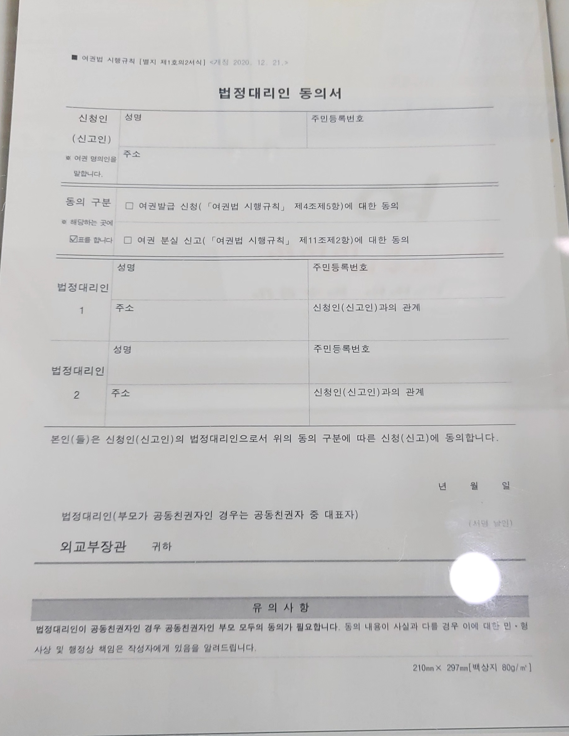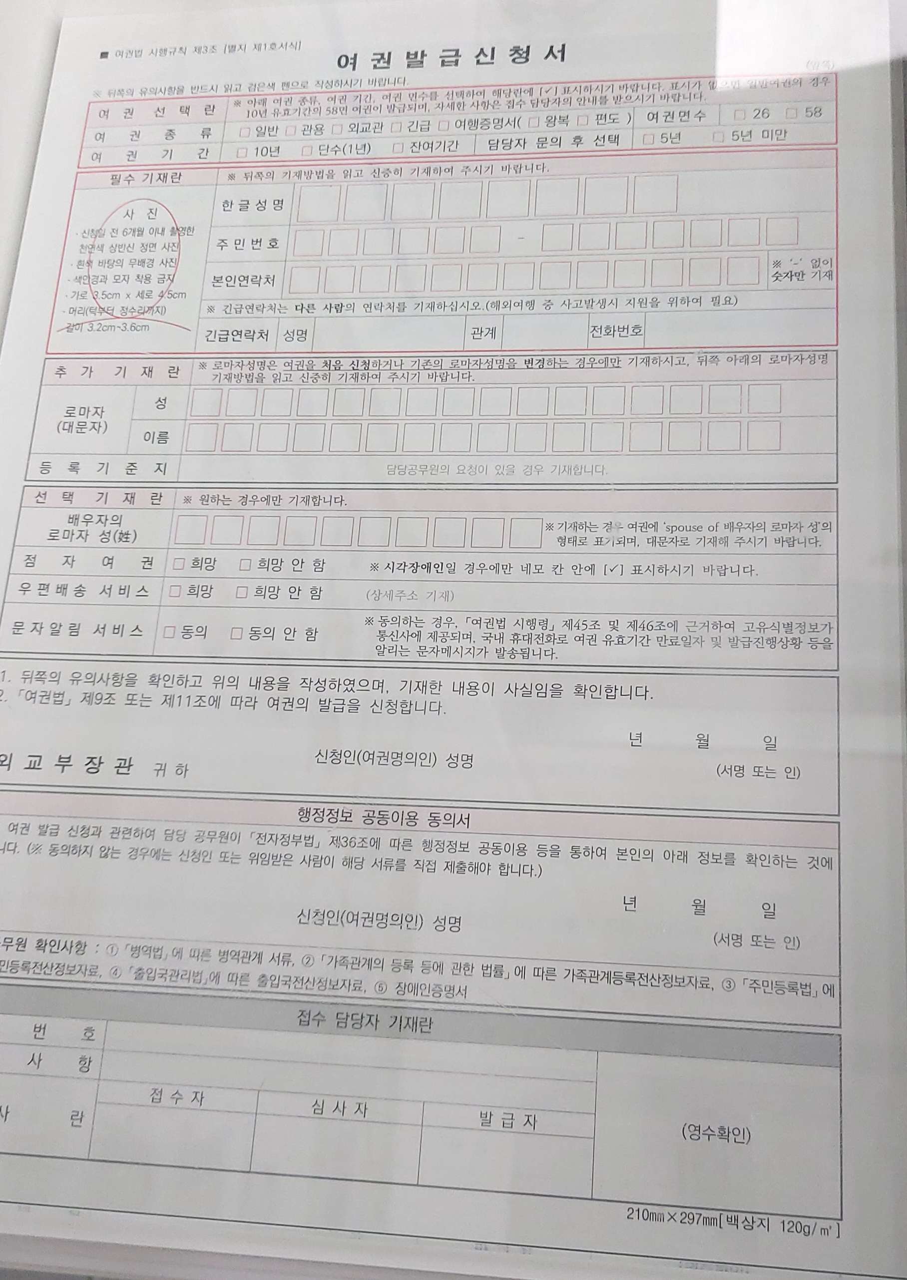 나중에 여권 수령할때 꼭 챙기셔야합니다.