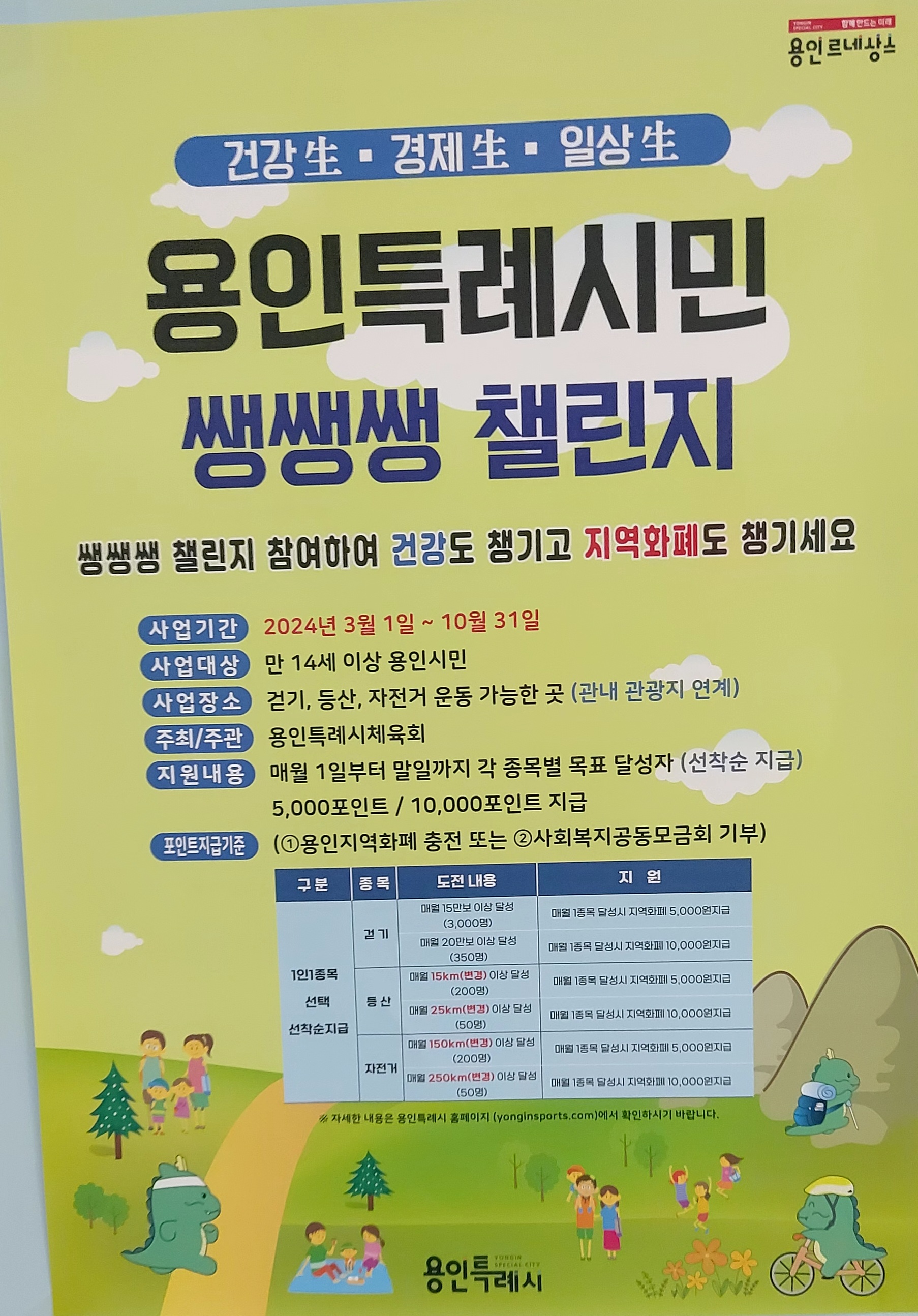 한달 15만보 걸으면 5천원 용인와이페이 5천원 현금포인트가 지급된다고하네요.