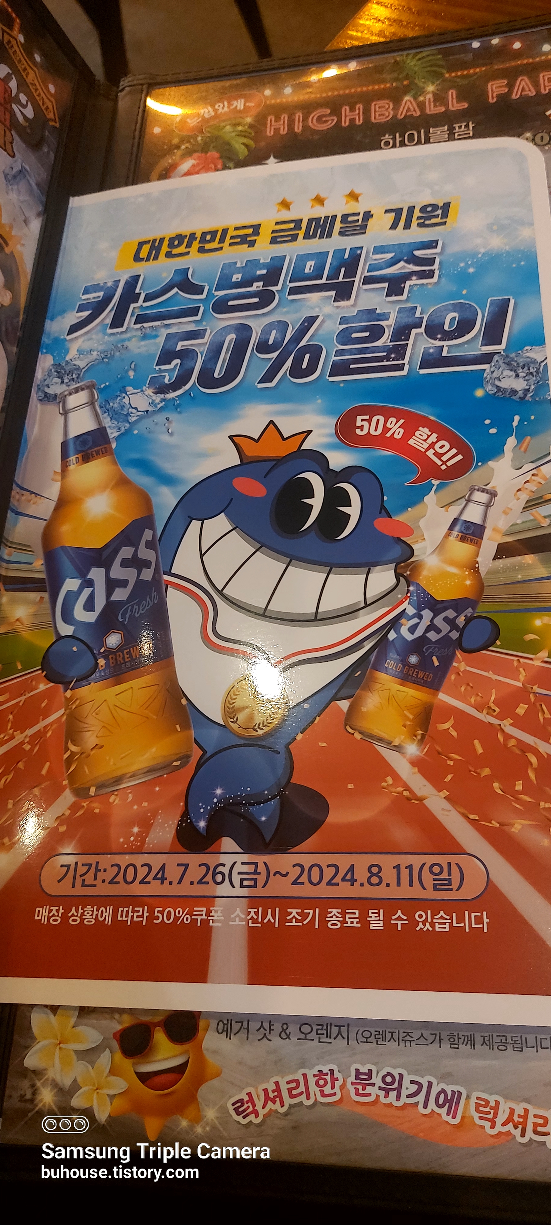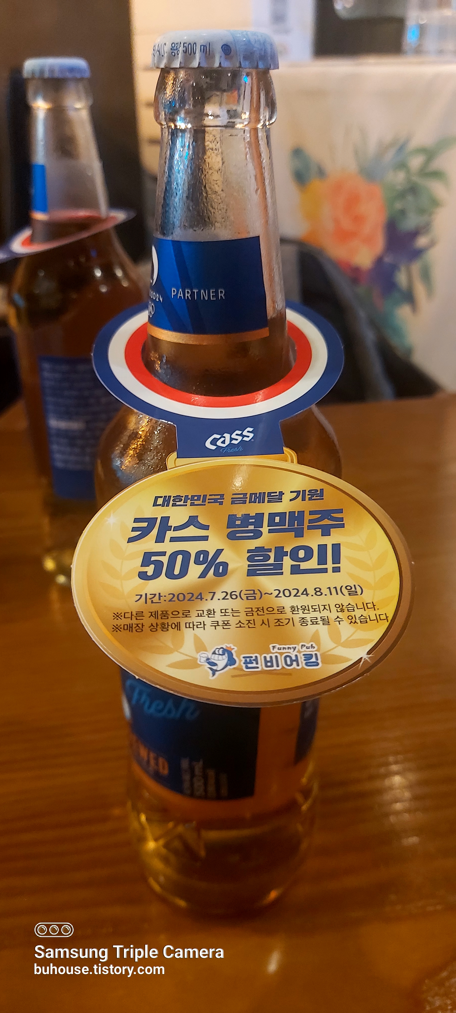 펀비어킹에서 이번주 일요일까지 카스 병맥주 50프로 할인합니다.