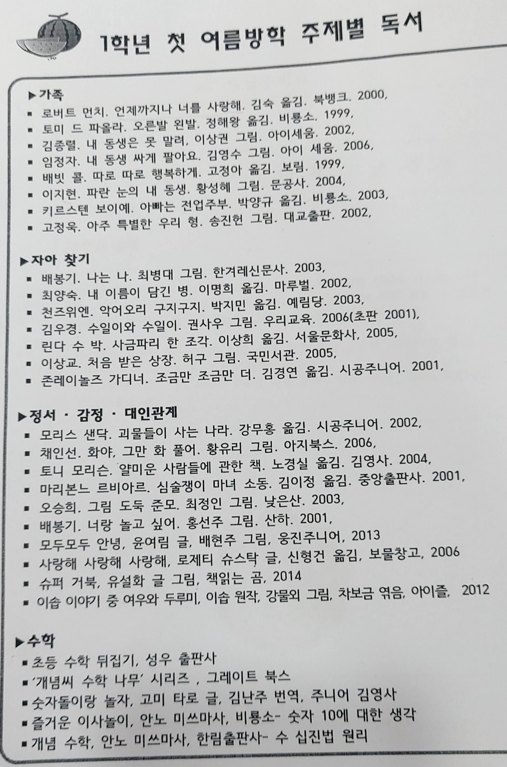 초등학교 1학년 아이들 권장 도서 목록입니다.