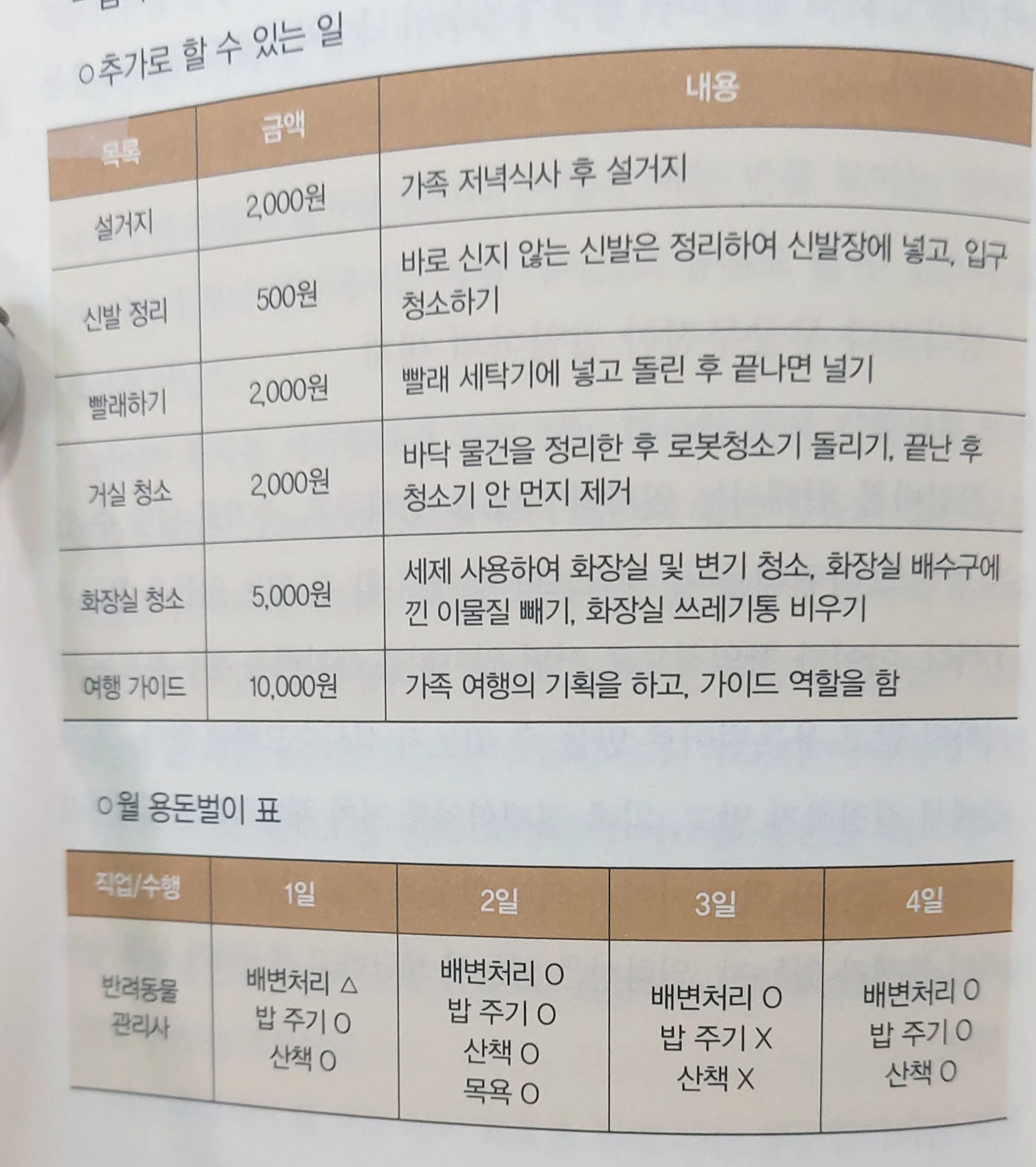 - 아이 용돈 그냥 주지말고, 본인이 벌 수있도록 한다. 그 중 '잡알바' 추천. 예)가족 여행 시 아이에게 여행 코스 일정 짜도록하기, 역사 유적지에 갈 경우 여행 가이드 시켜보기