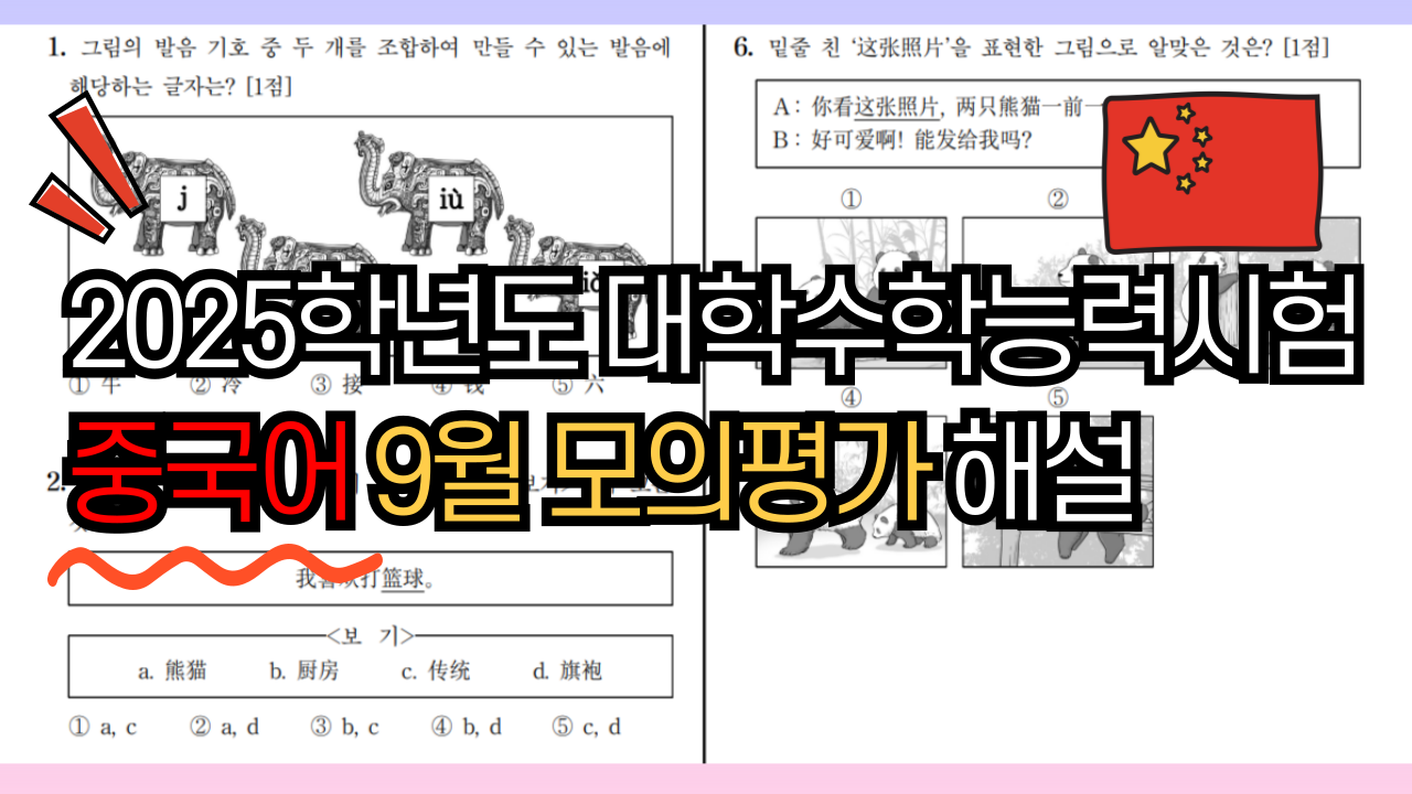 오늘은 2025학년도 대학수학능력시험 중국어 9월 모의평가 해설 강의를 올려드립니다.