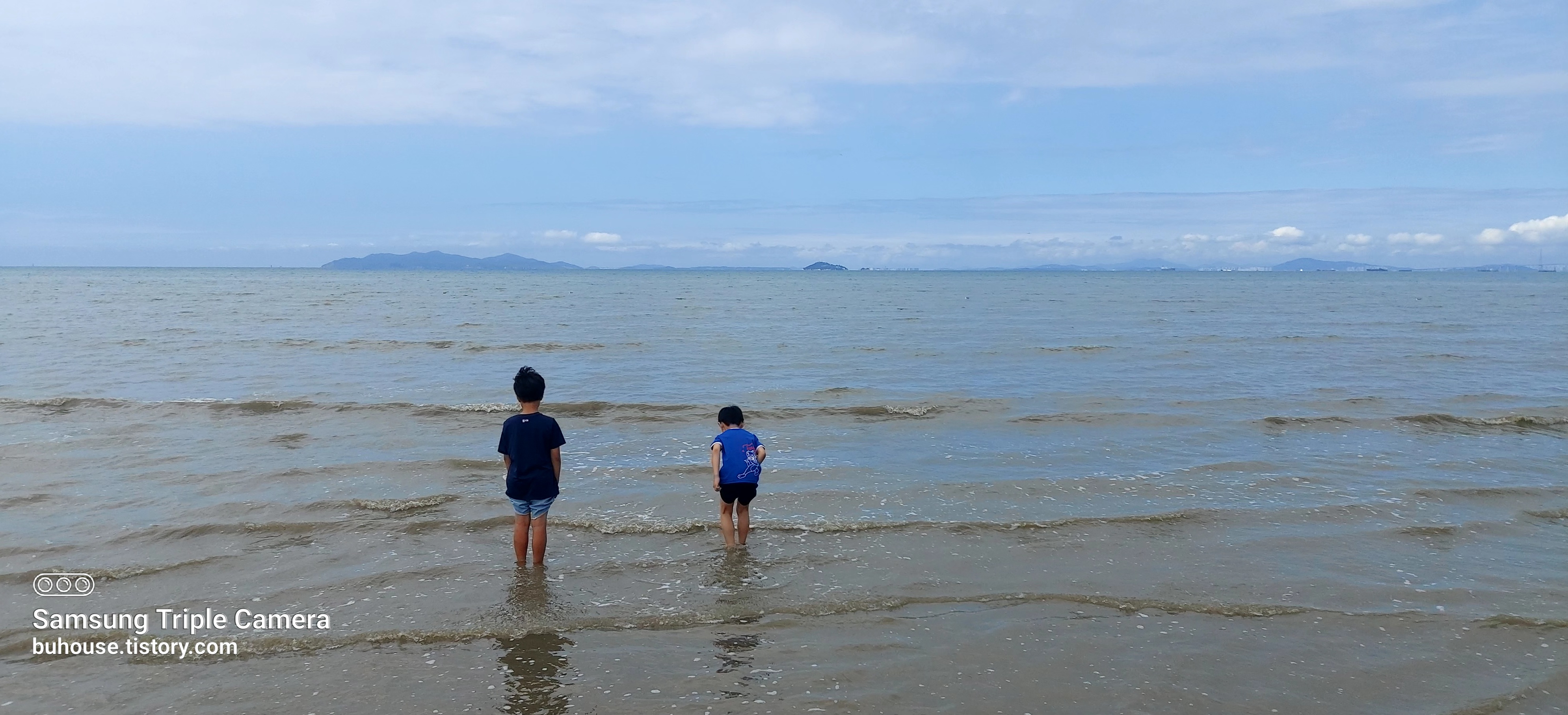 아이들이 몇 번 물어 들어가더니 바다에 푹 앉더라고요.