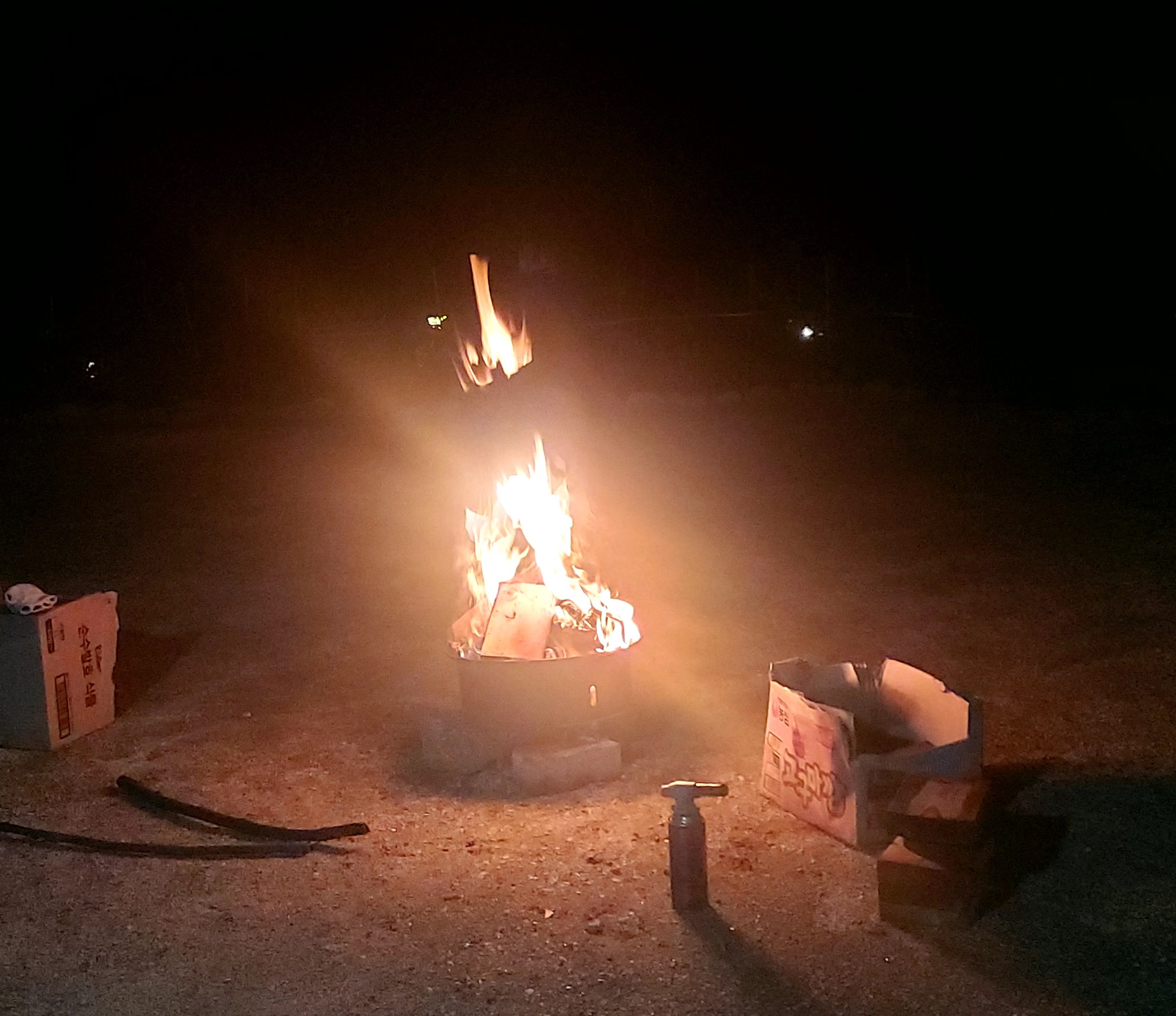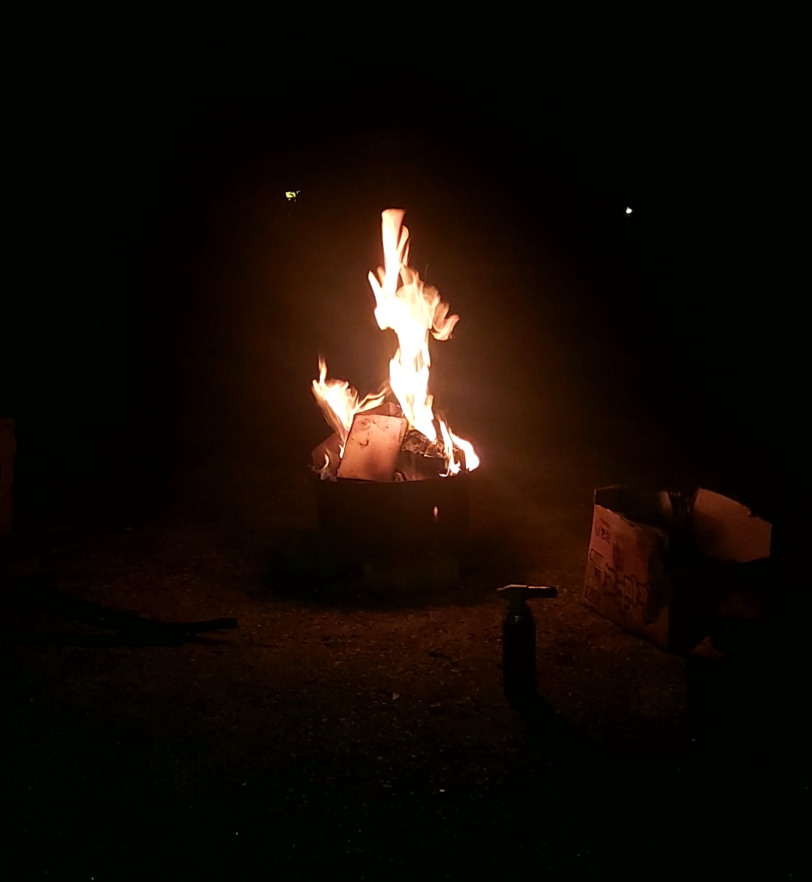 밤이되어 캠프파이어 했어요.
