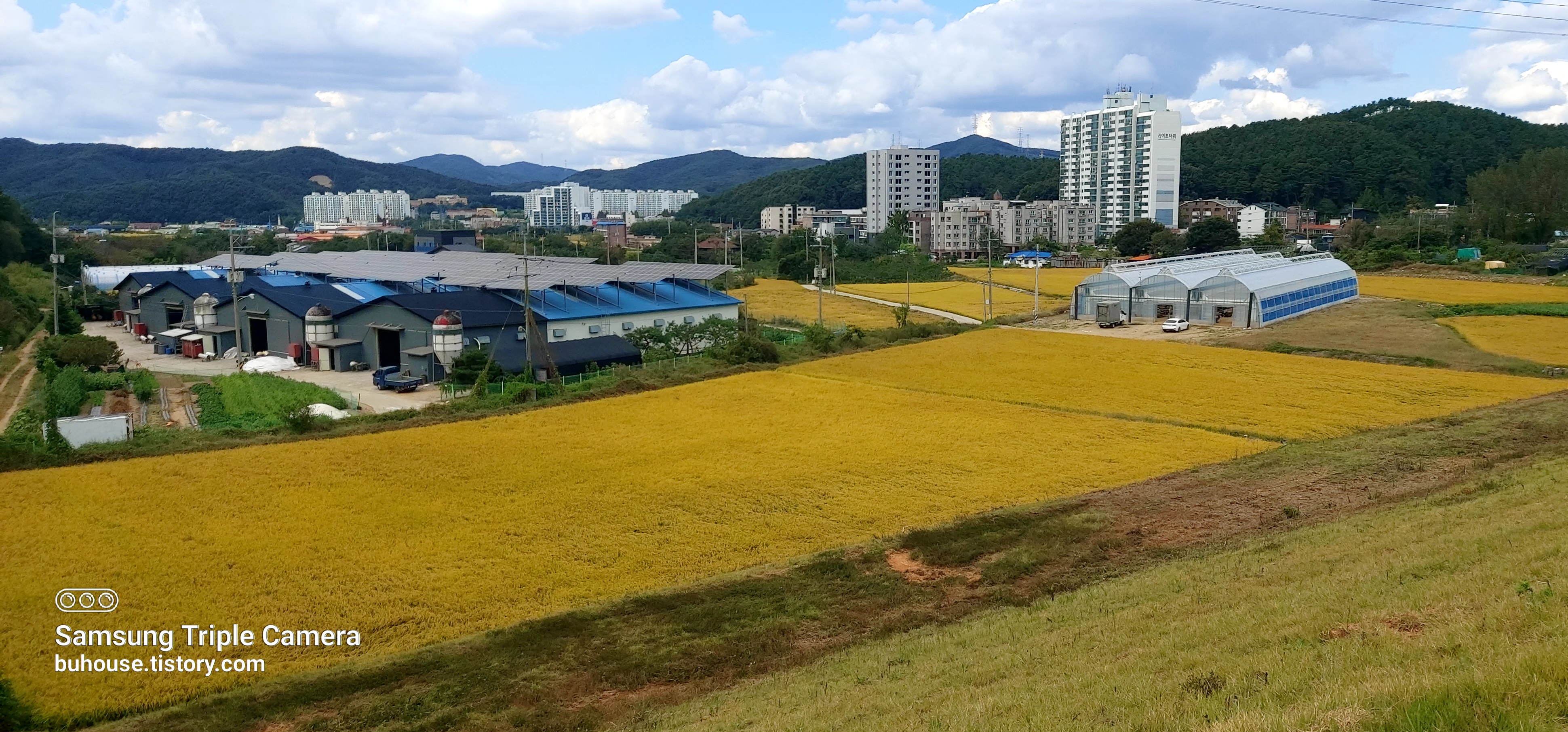 산을 내려오니 논 풍경이 눈에 들어오네요.
